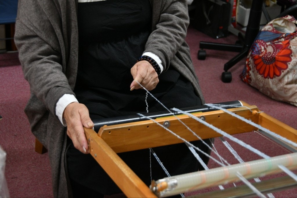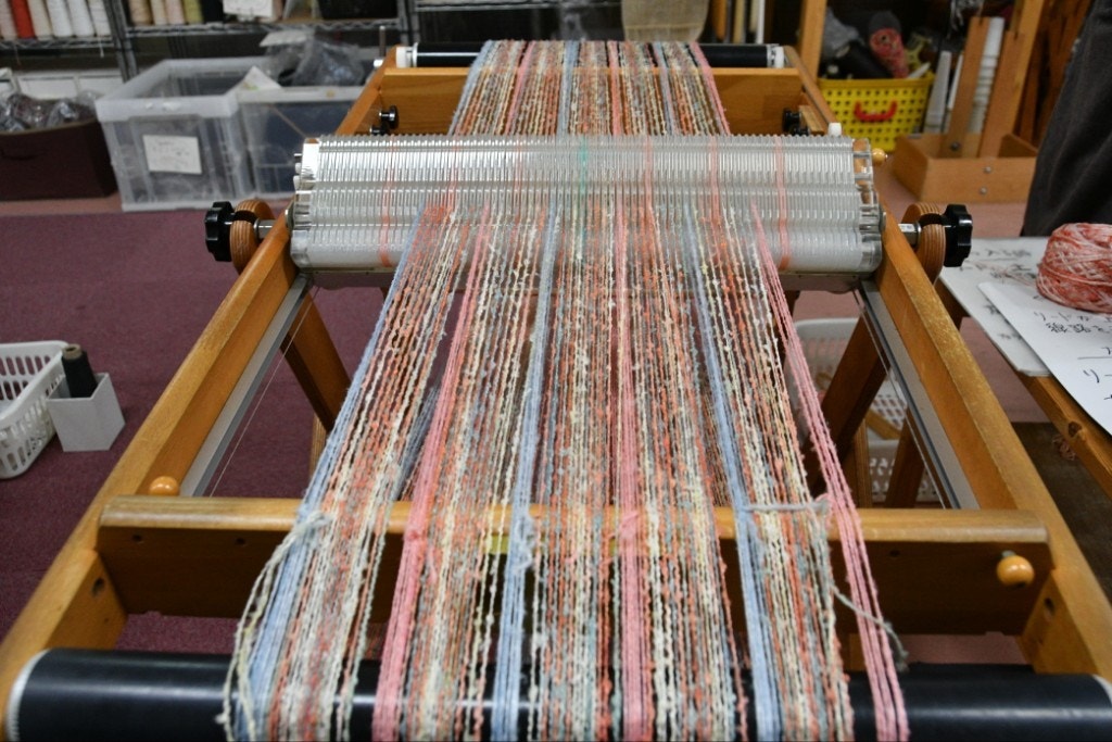 また、織り機にはガイドが付いていて、目の不自由な方でも織れる仕組みがなされていました〜!