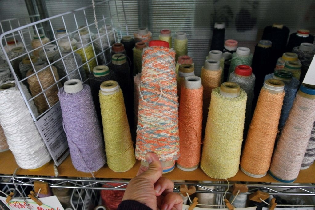 伸び縮みする特殊な糸の部分だけやって頂き、経糸からスタートです。