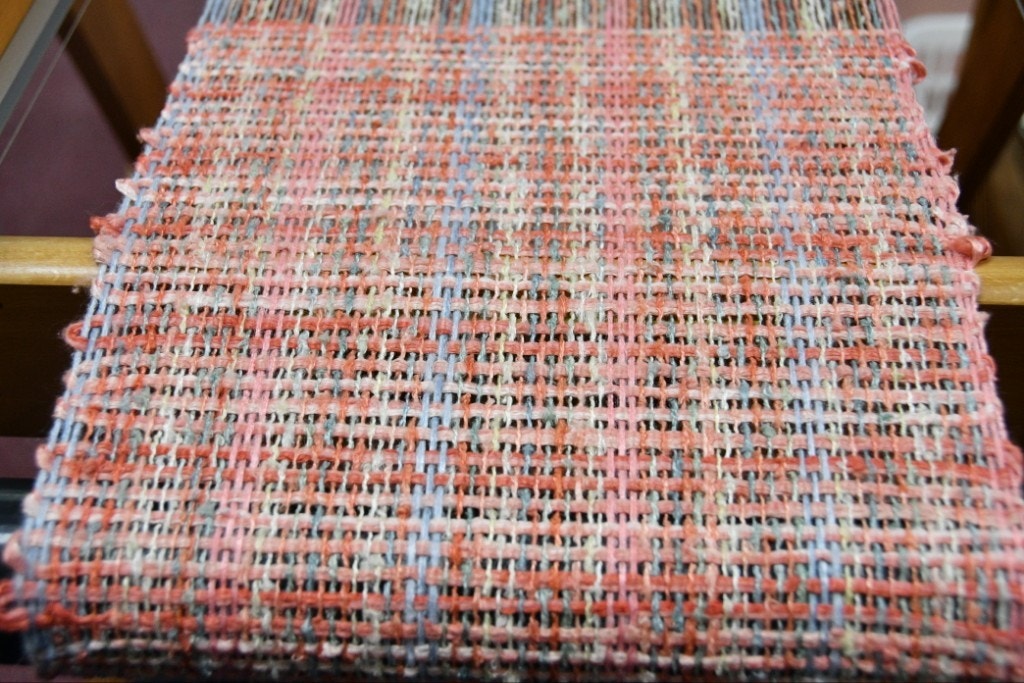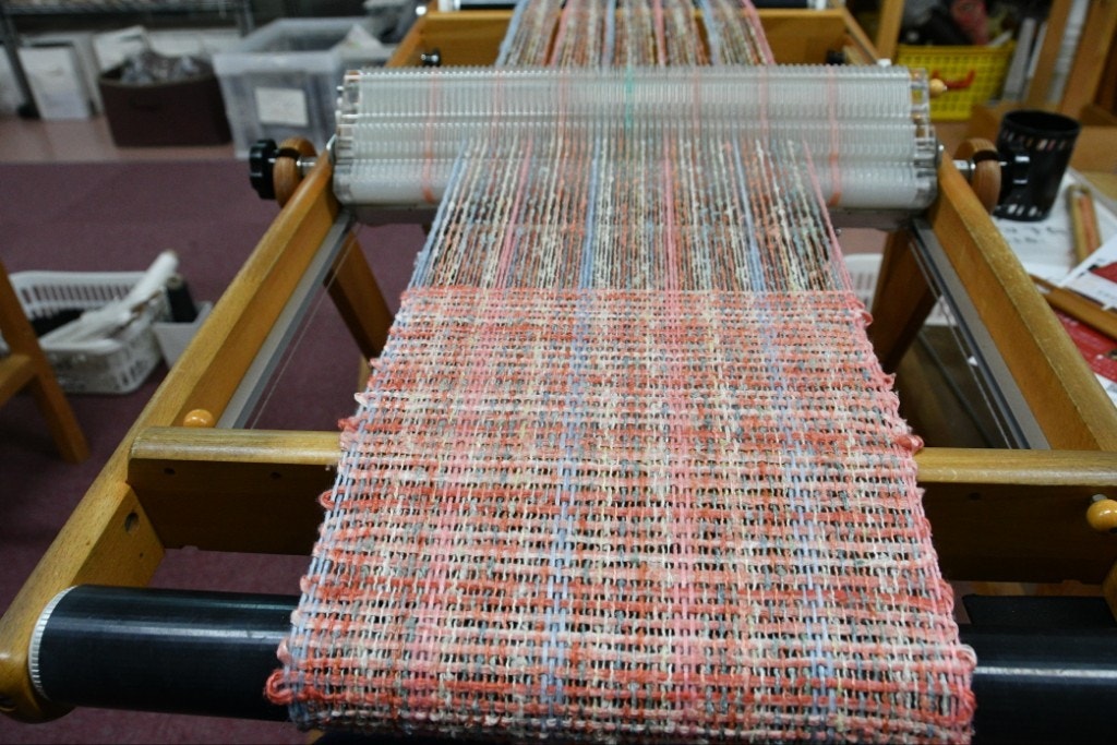 緯糸は経糸に合わせた同系色の茜色にしました。