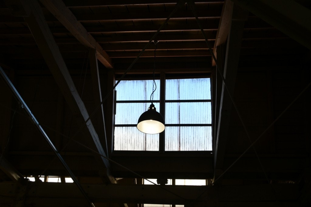 のこぎり屋根の工場を改装した建物で…