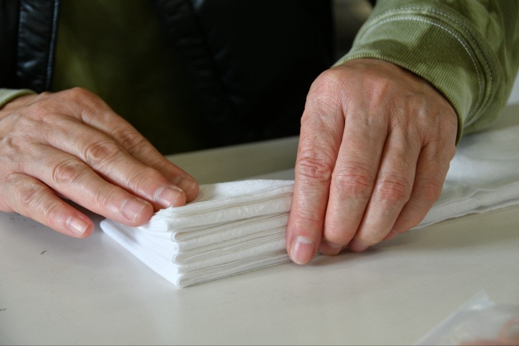 次に、手ぬぐいの生地を折り畳みます。