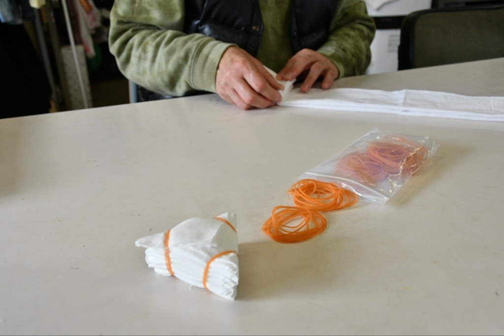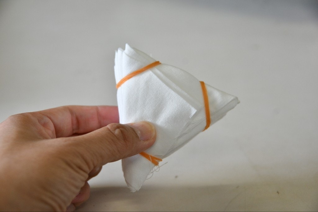 折り終わったら、輪ゴムや板で挟みます。
