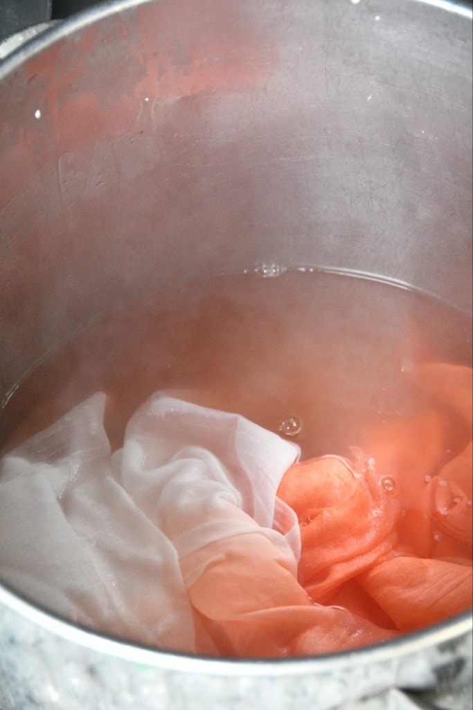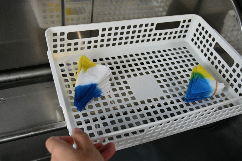 グラデーションに染めるには、蒸して定着させるのではなく、時間で定着させます。