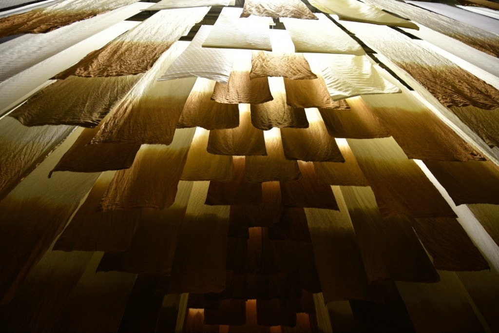 FUJI TEXTILE WEEK の会場で飾られてたアート作品の、布の染め工程を見せてもらいました。