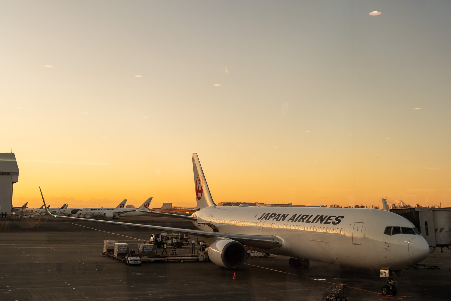 地元の駅を始発に乗って羽田に行ってみたら、予想外に早く着き、出発2時間前には到着(笑)羽田も夜明け前でした。