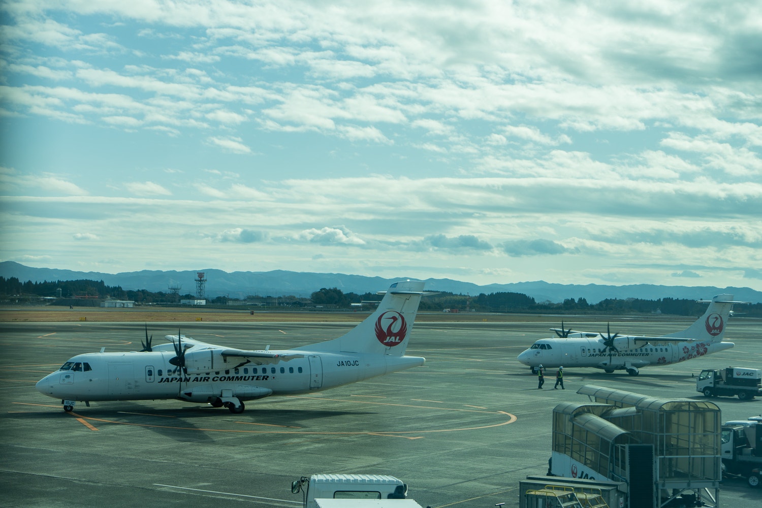 鹿児島空港は思っていたよりもこじんまりとしていて、種子島行きの飛行機はプロペラ付きの小さめの飛行機。