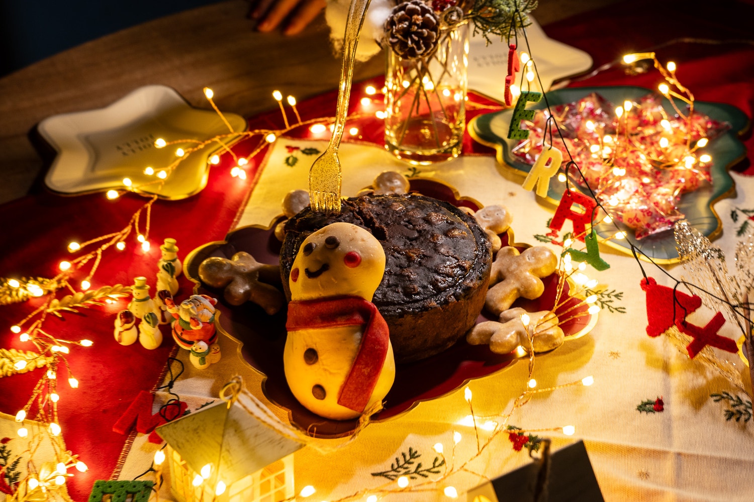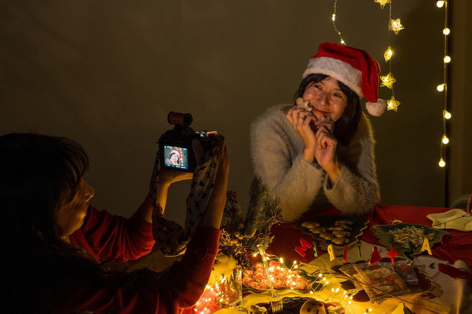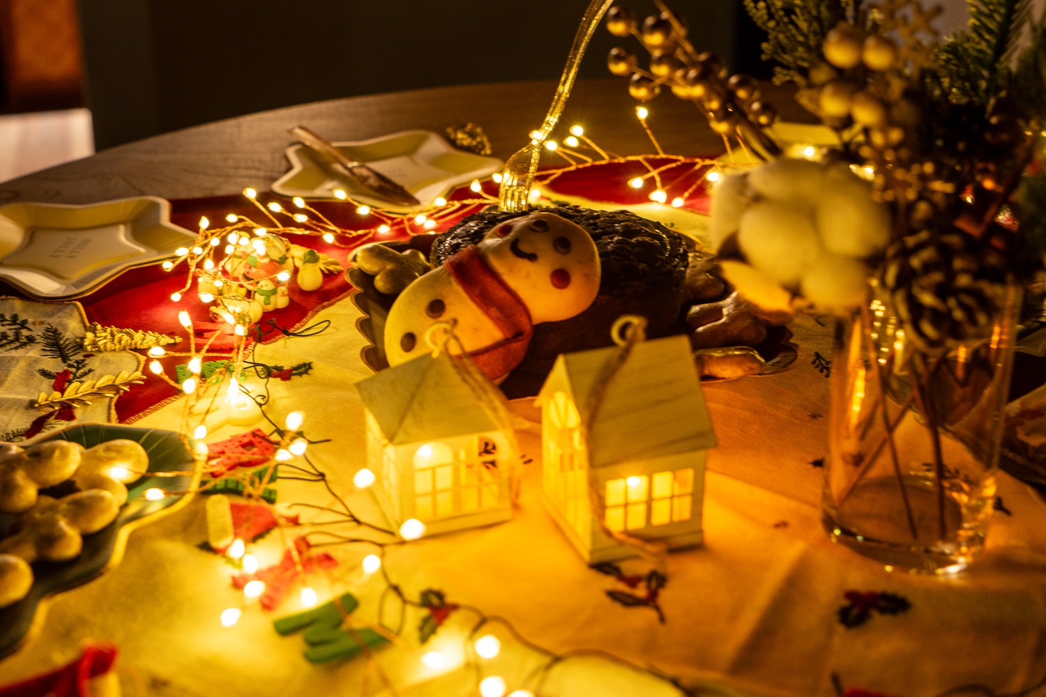 夕食後、さつきさんが持ってきてくれたグッズたちでクリスマスのテーブルフォト撮影会