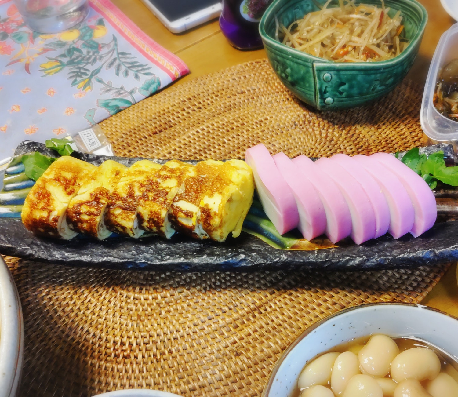伊達巻が秒殺だったので、大きめ玉子焼きを作る。