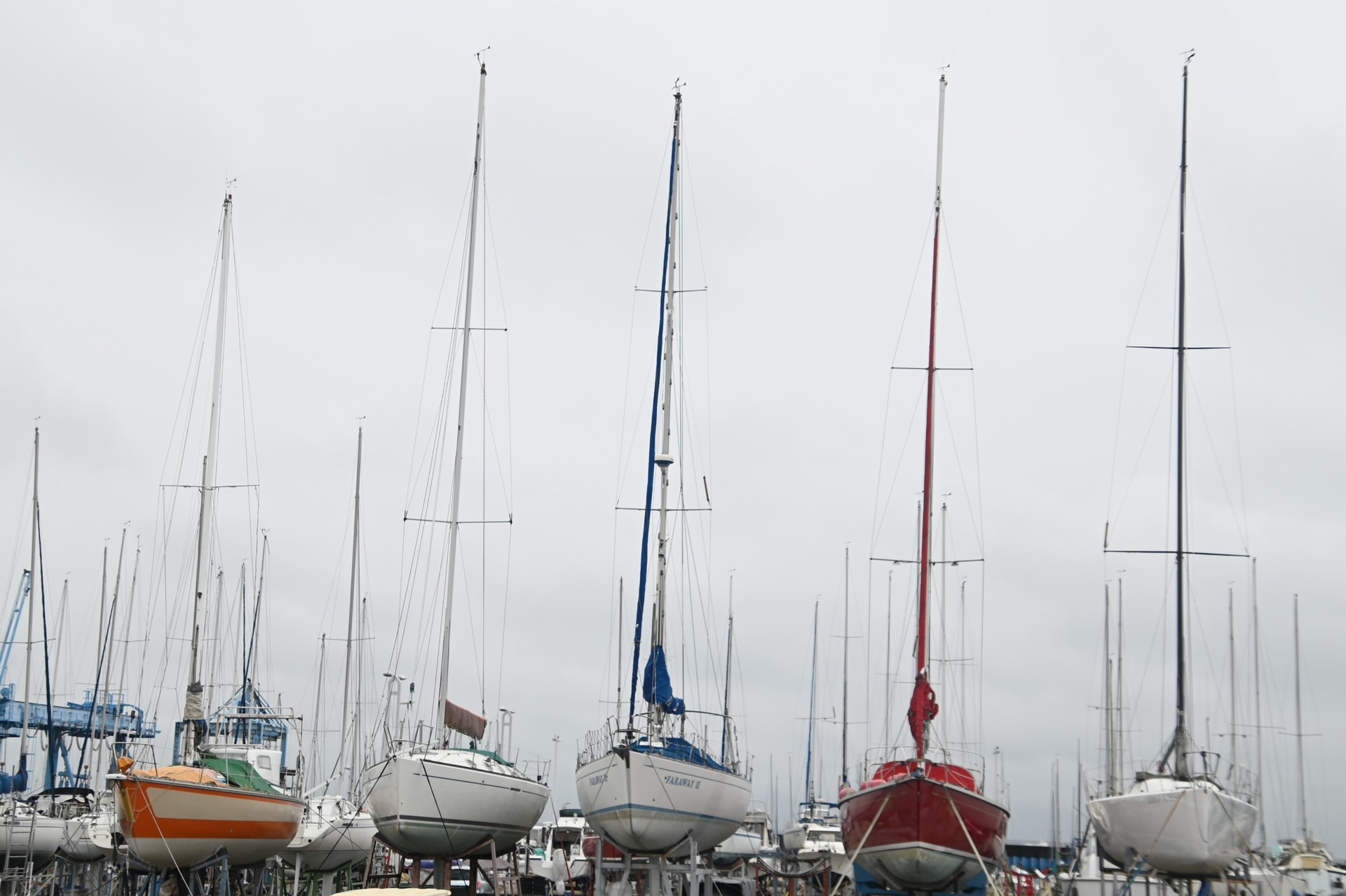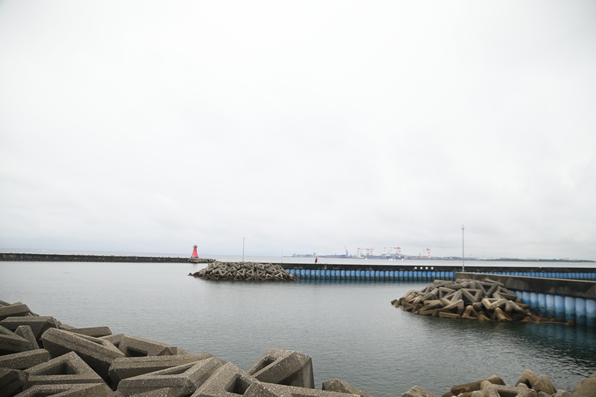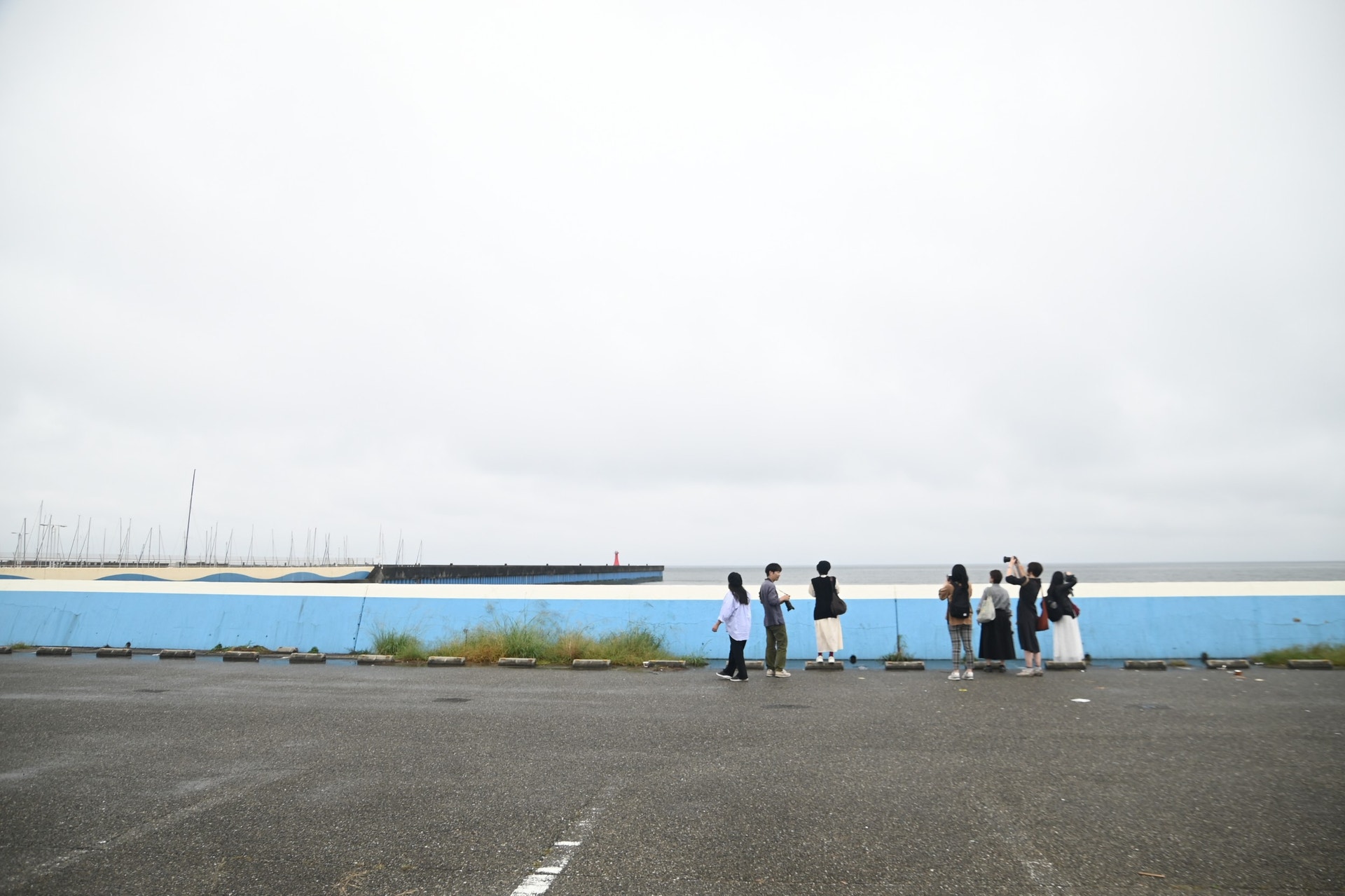 色とりどりのヨットが並んでいる様子は圧巻でした。この時、雨がだんだん止んできたので、港の先端まで行ってみよう!と行ってみることに。