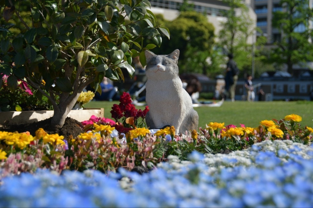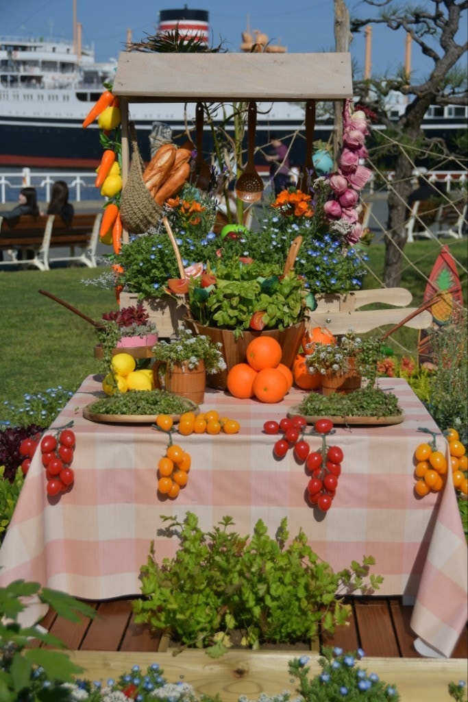 山下公園では、色んな団体さんが飾り付けした花壇がありました。
