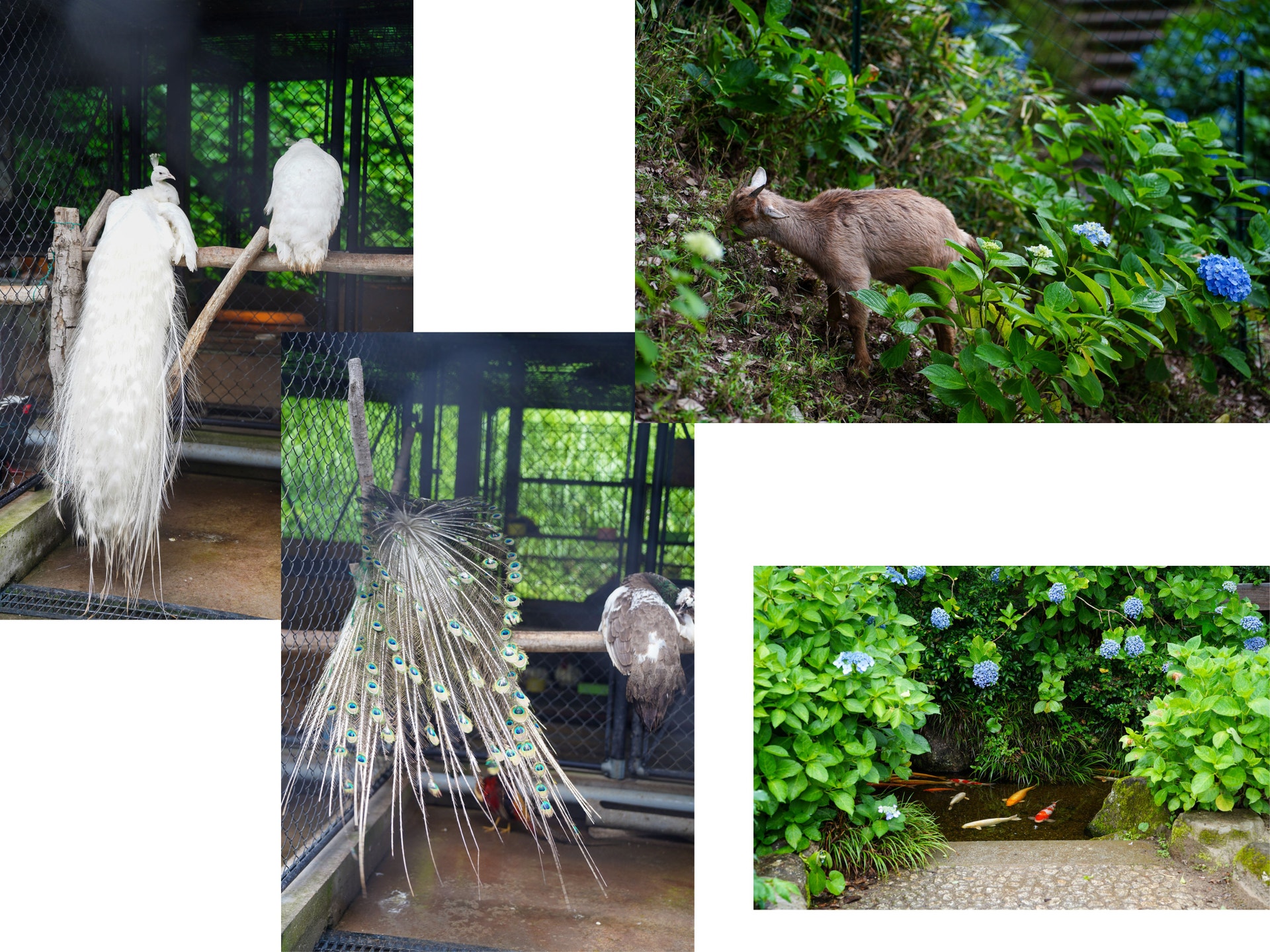 放し飼いにされていると聞いていた白孔雀ですが、普通の孔雀とともにゲージの中にいました。雨だからでしょうかね???