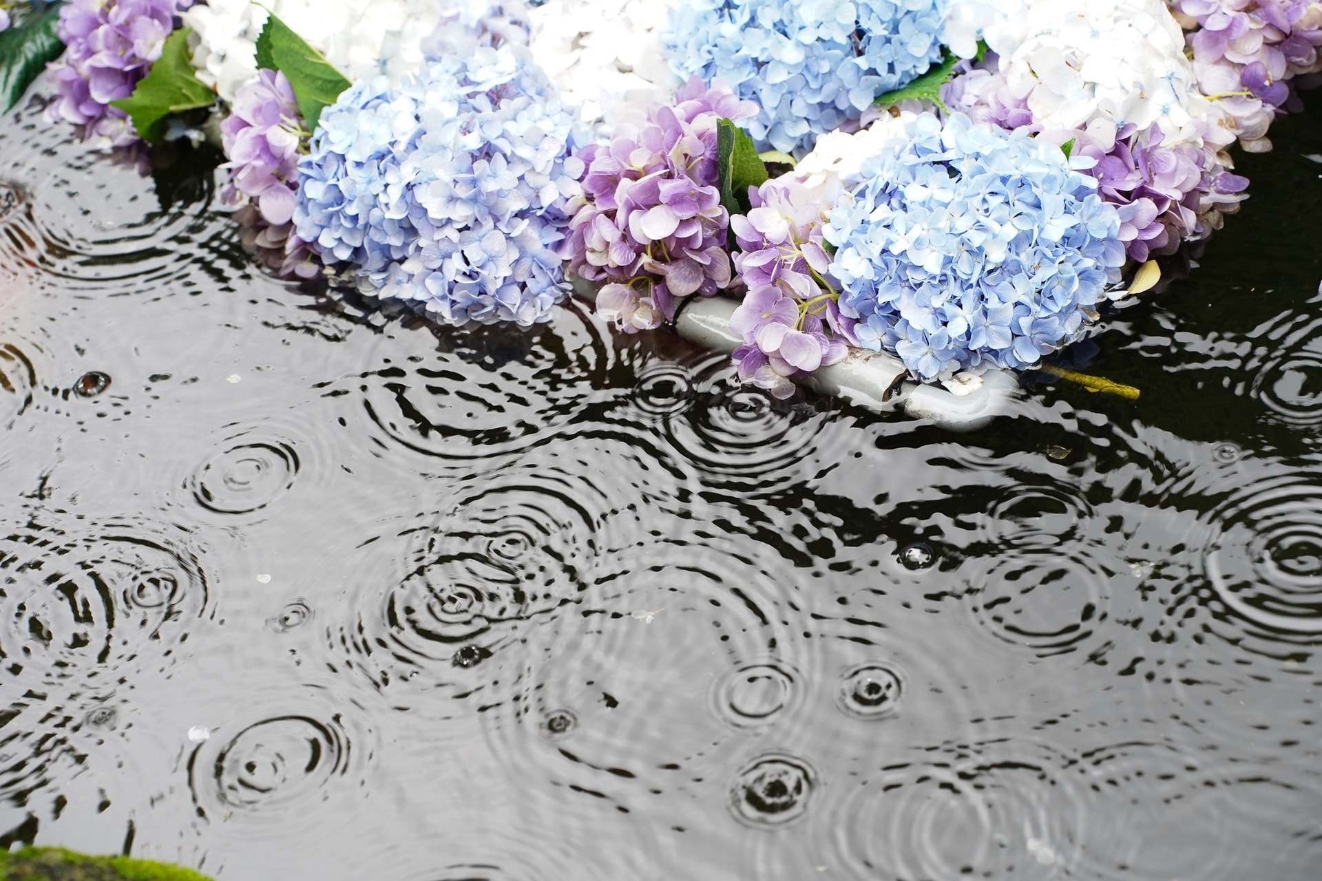 たまに雨が降ってきても、あじさいとだったら絵になるからいい感じ…