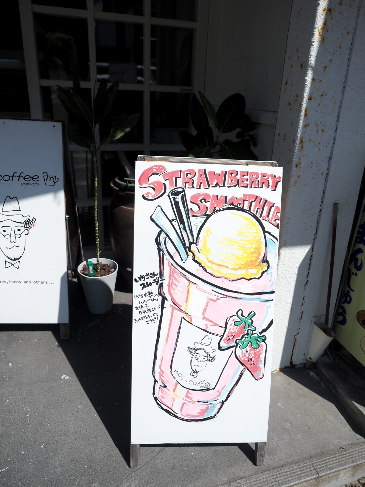 歩き始めると苺スムージーの看板を発見!