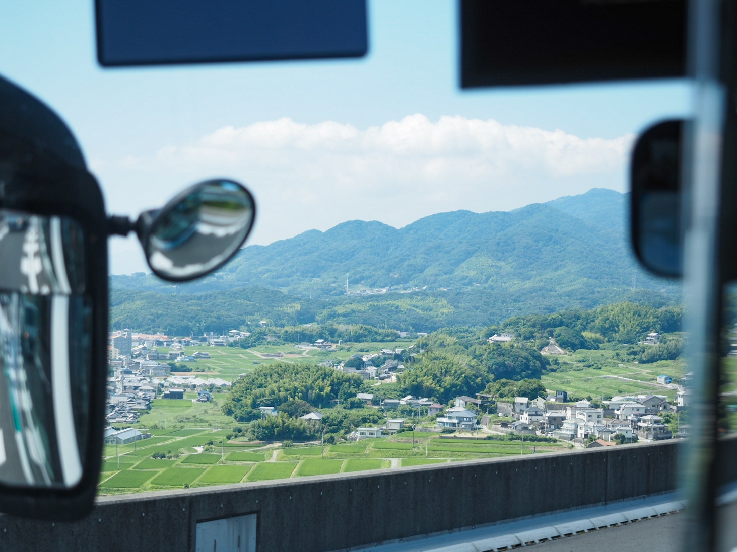 最初の目的地は徳島と高知のほぼ県境。淡路島を通過しながら、約5時間バスに揺られます。