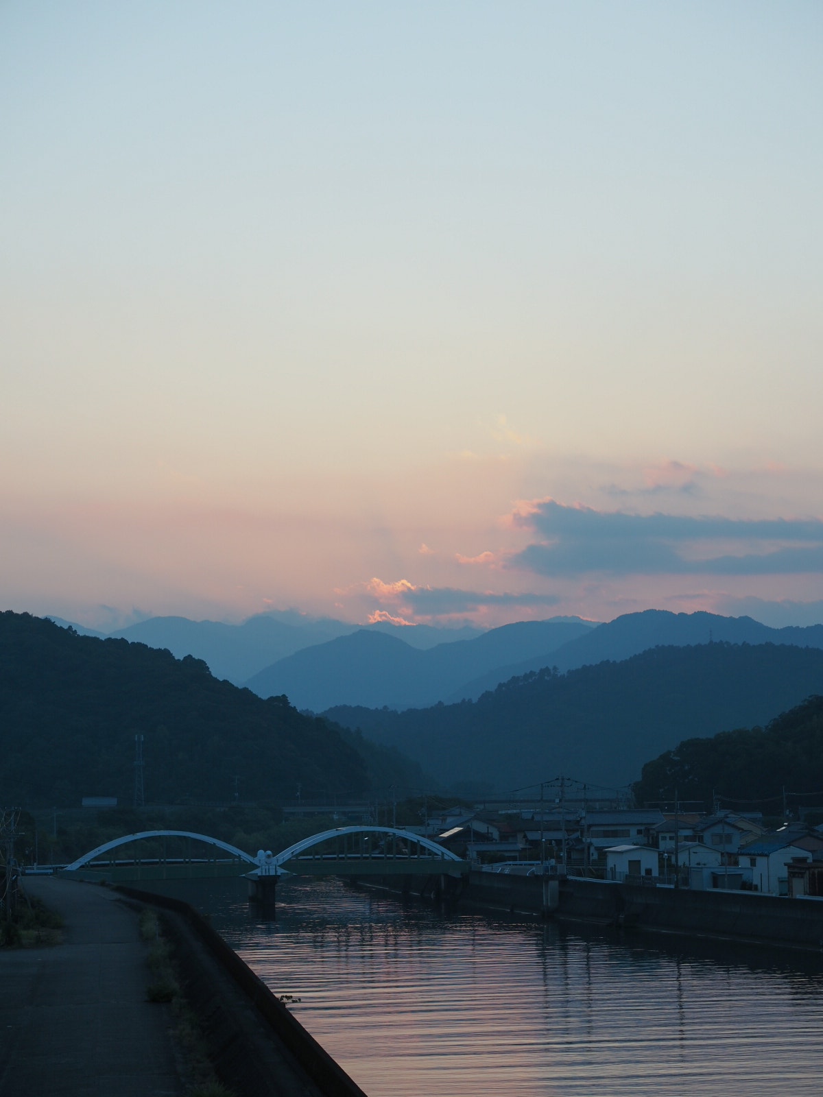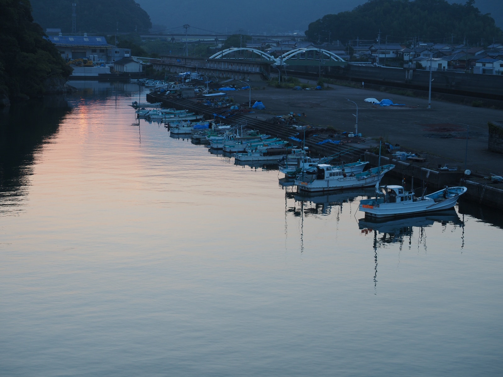 近くの宍喰川に映る夕焼けと漁船のコラボレーションも堪能しました。