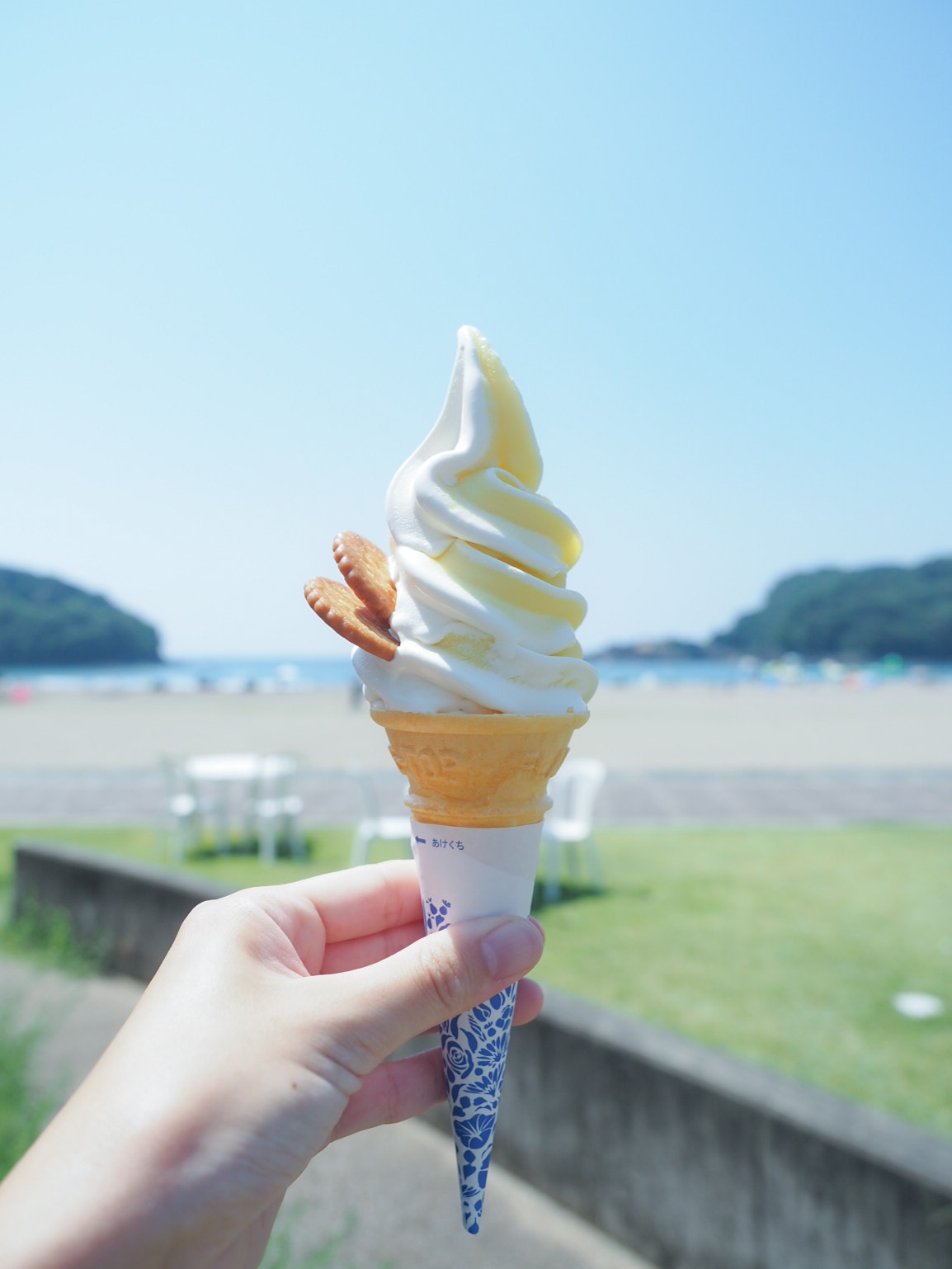 ぽんかんソフトが食べられるという前情報だけで行ったのですが、目の前は大きな海水浴場!
