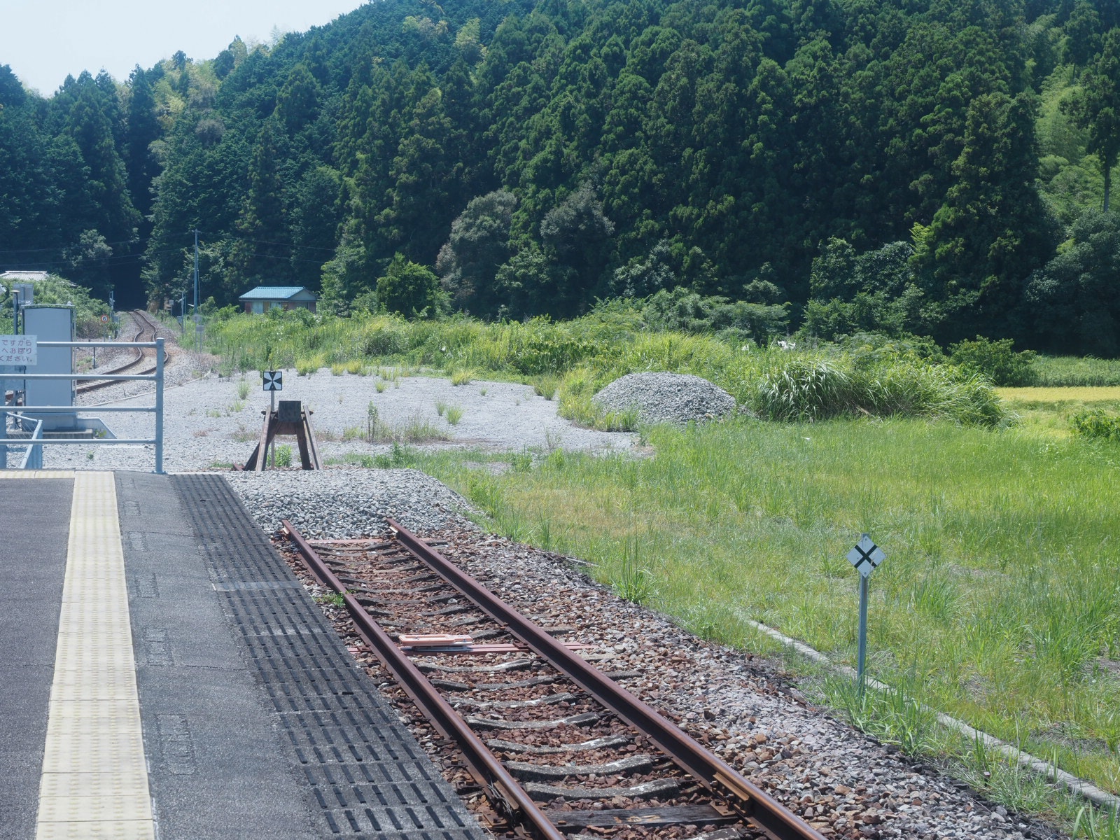 昔はもう一つ隣の海部駅までがJRの管轄だったらしいのですが、DMVのモードチェンジ(バス⇔鉄道)の場所を確保するためにこの駅で線路が分断されたのだそうです。
