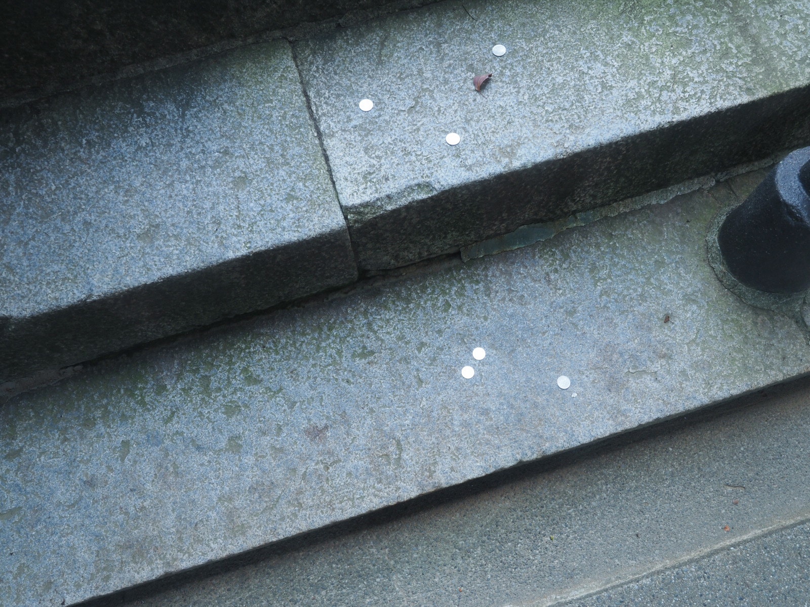 厄年の人がこの階段を上る時に1段ずつ1円玉を置いていくのだそうです。