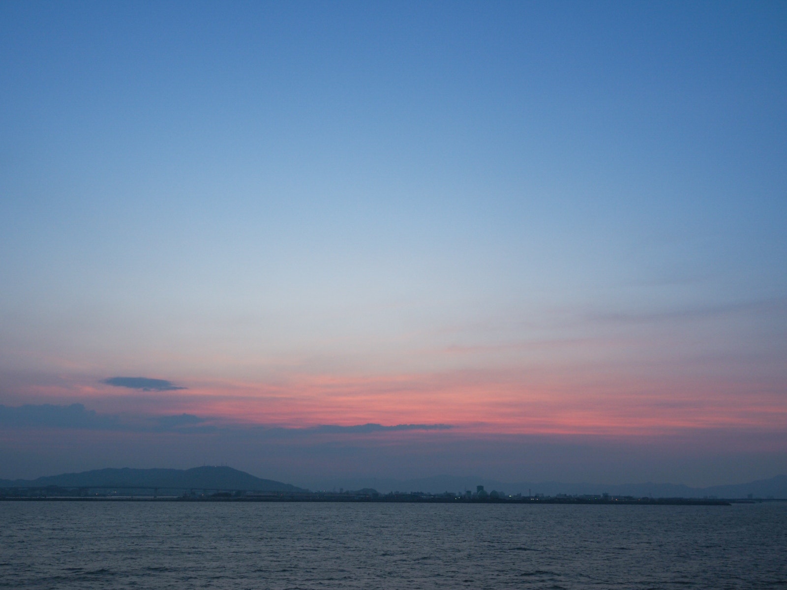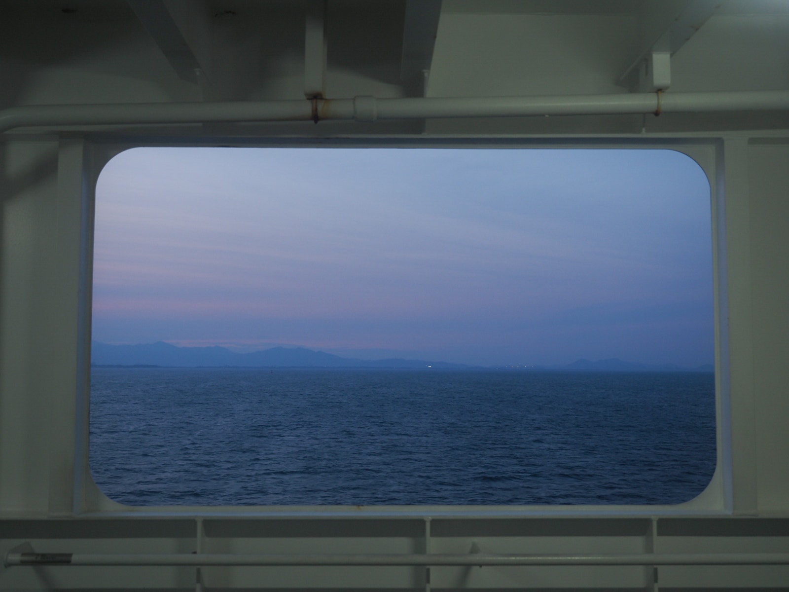 出航時がちょうど日没時刻ぐらいで、夕焼けがきれいでした。