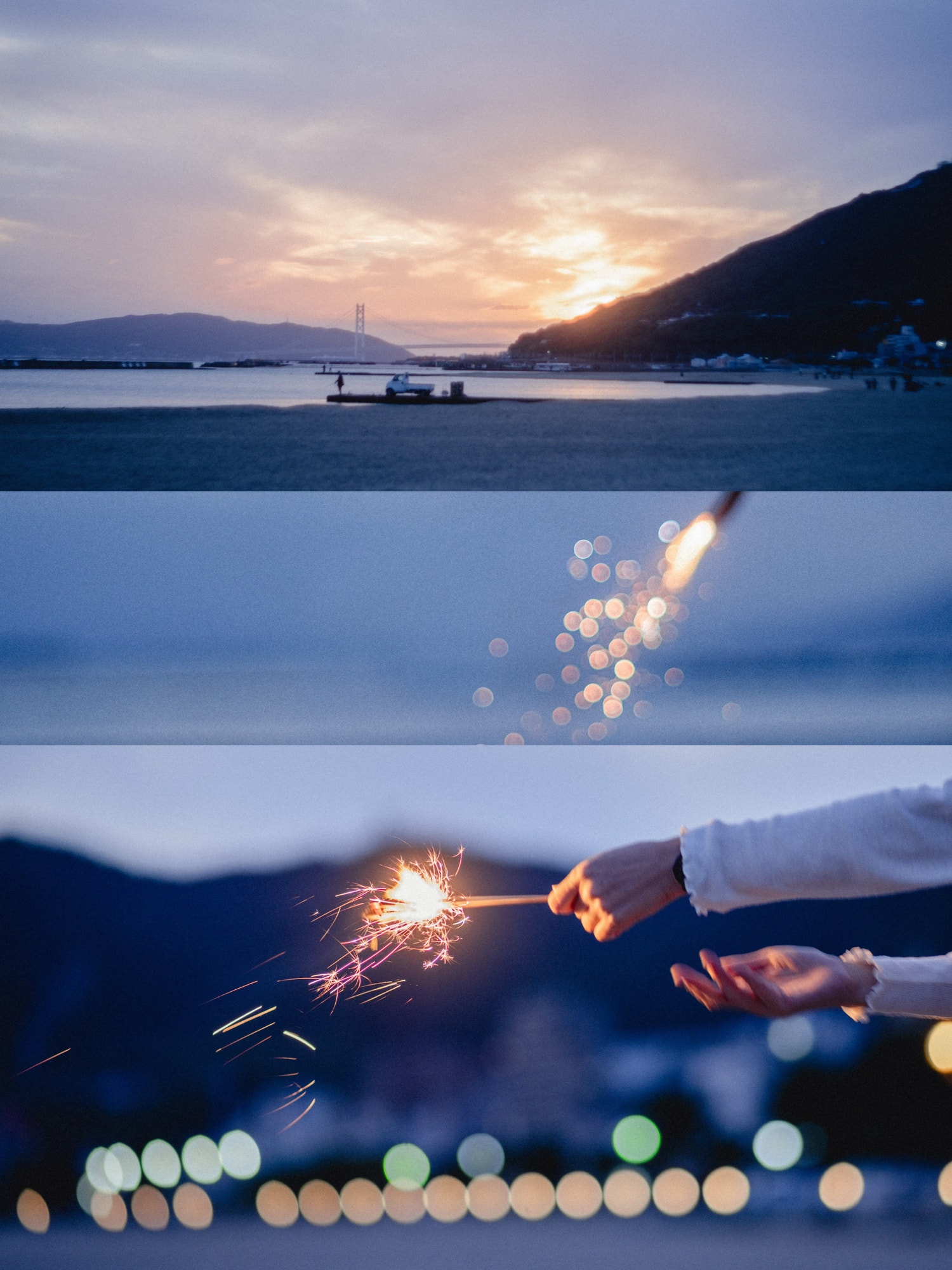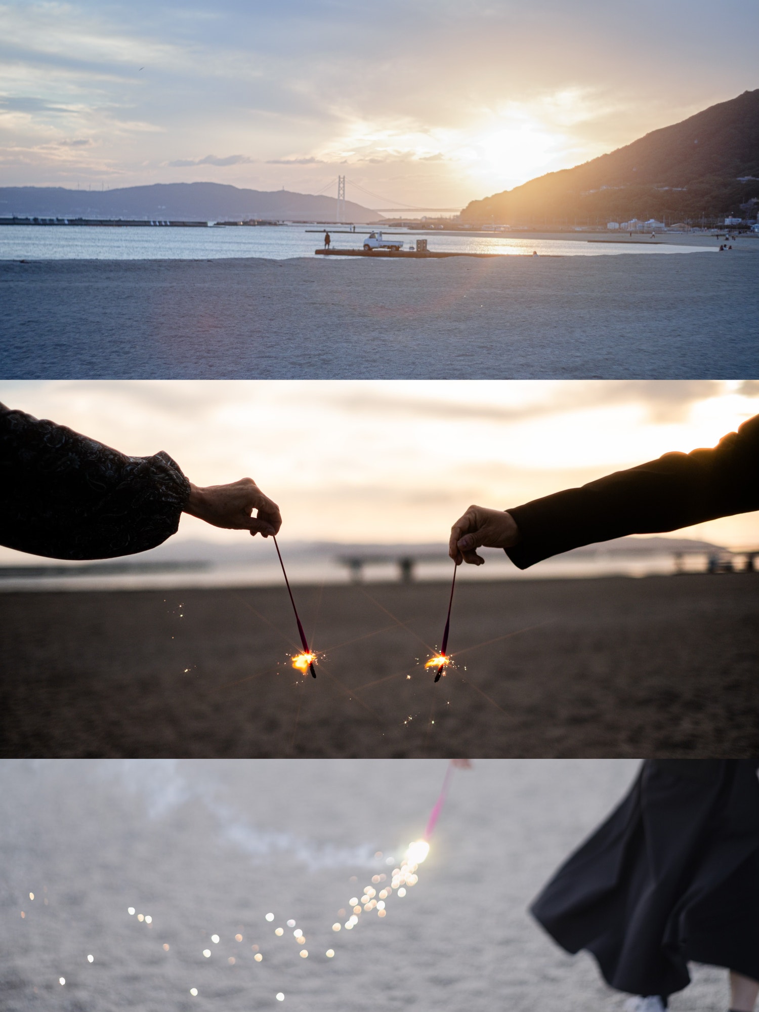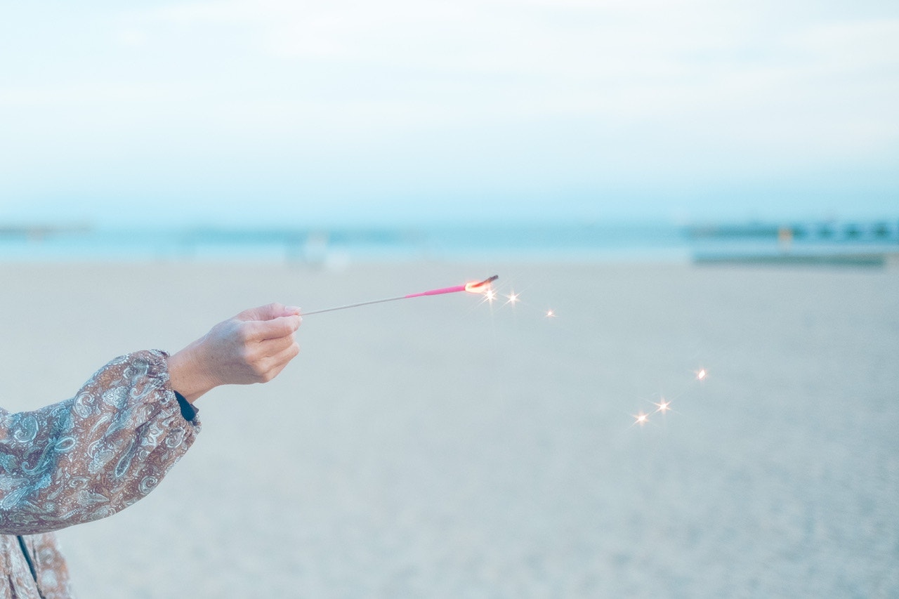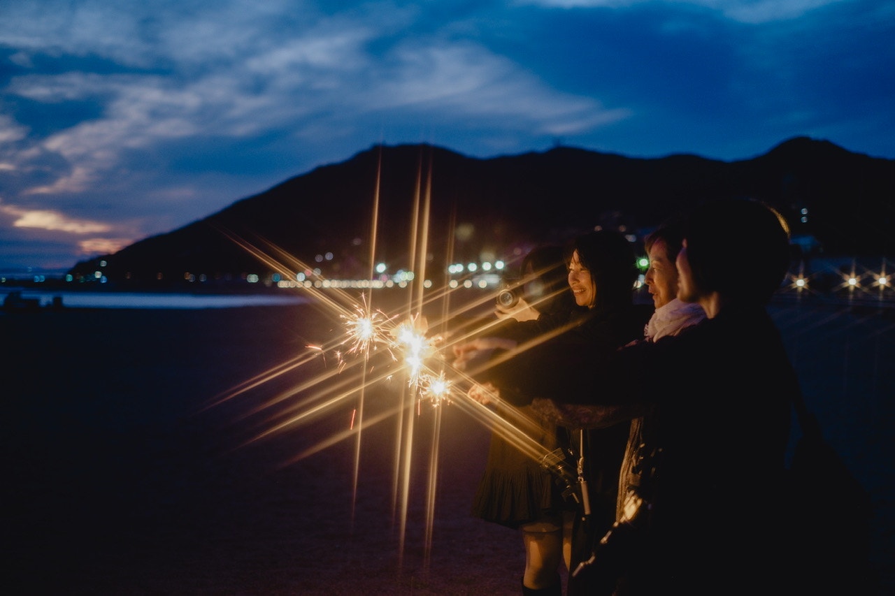 最初は波打ち際にキラキラを撮りに行ったんだけど強風で寒くて早々に戻ってくることに。さっそく花火開始・°*