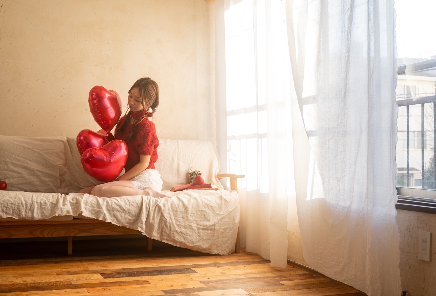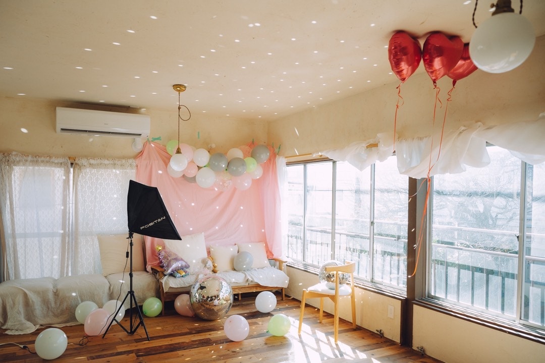 布をとり、シンプルに♡のバルーンをいかすように