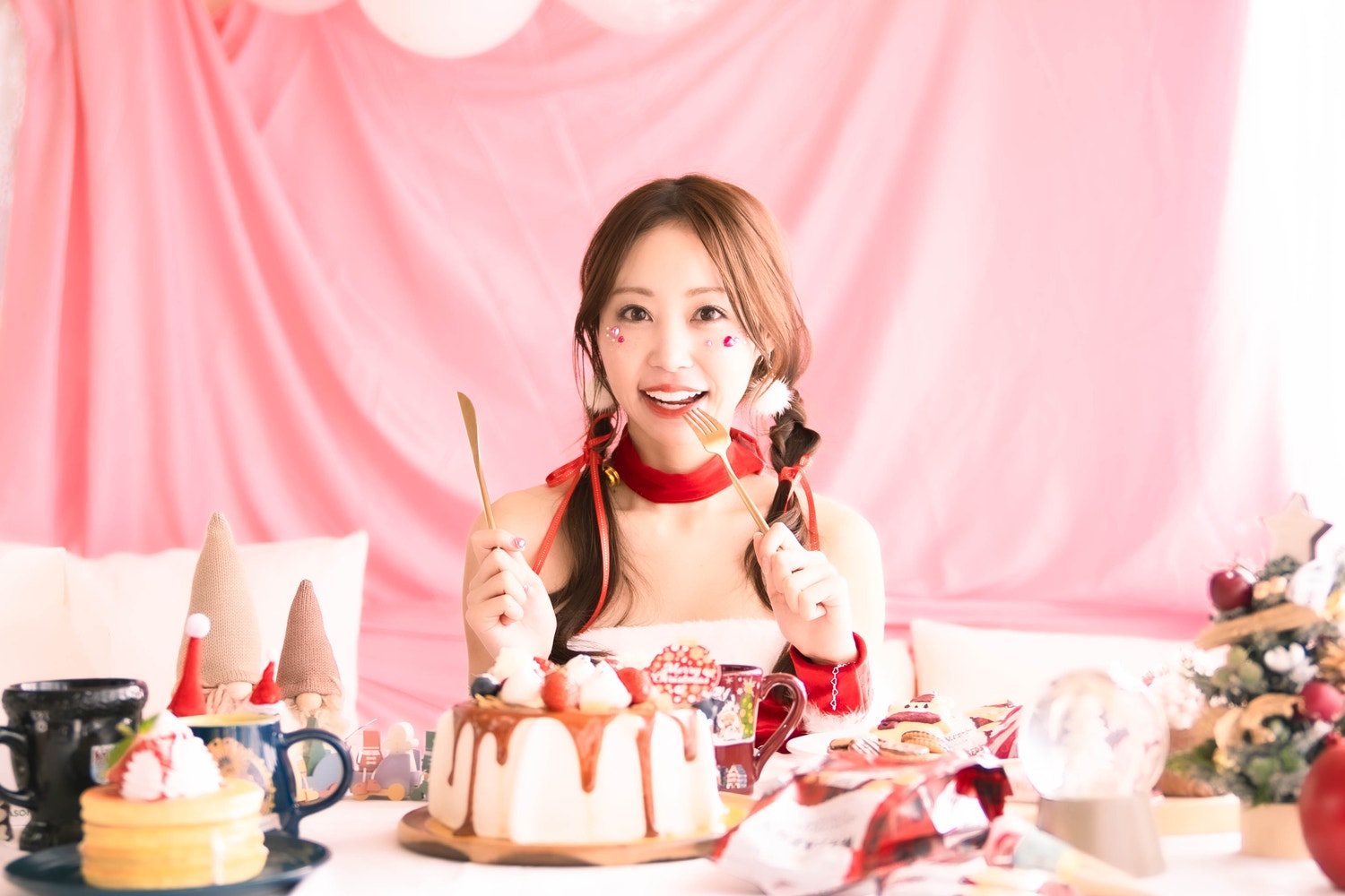 モデルちゃんもノリノリで協力的、自前サンタの衣装を持参してくれました!