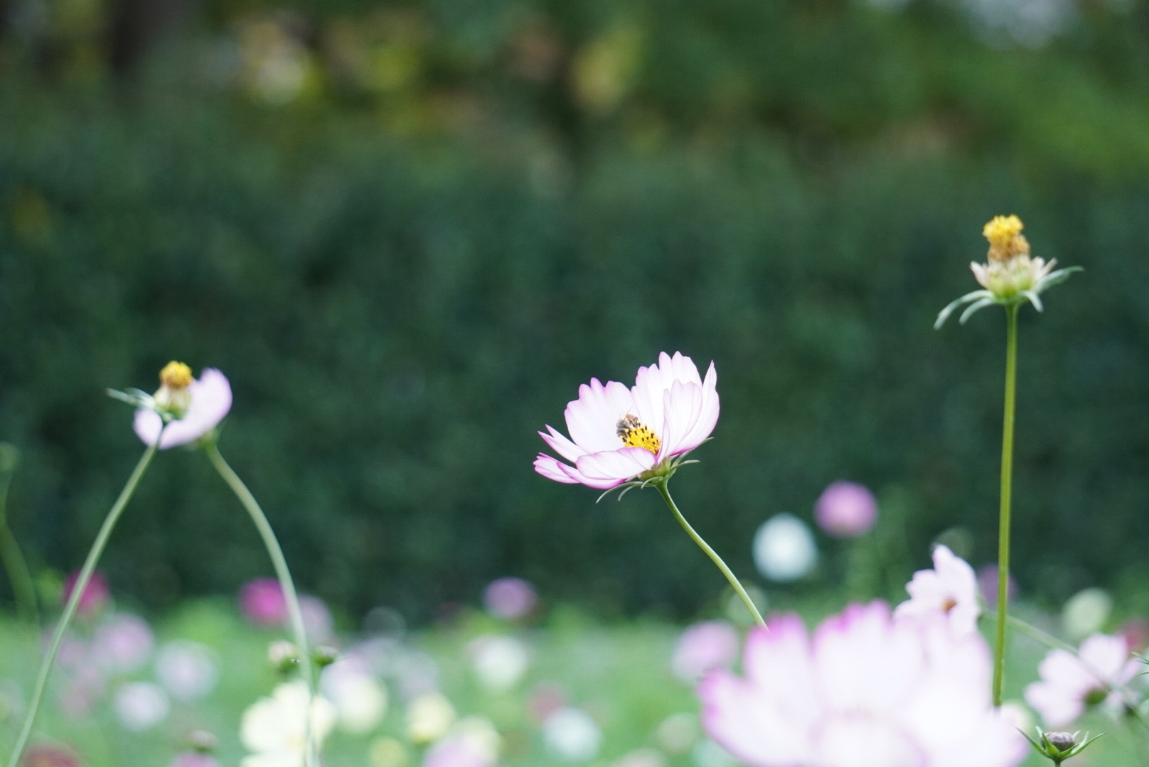 コスモスはまもなく最盛期というところ。ふんわりきれいな花に癒されました。