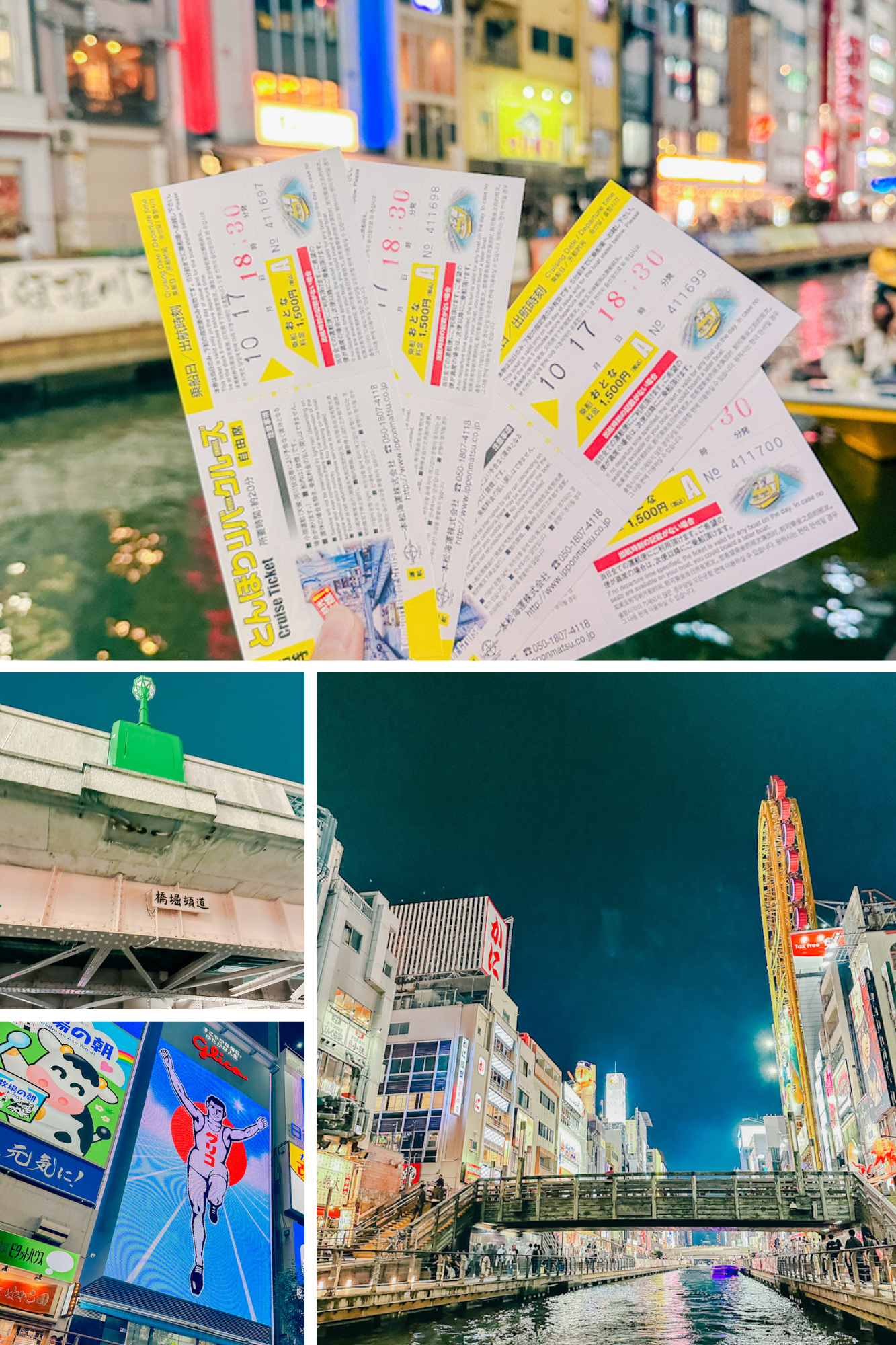 グリコのネオンが光る『道頓堀』では、陽気なガイドさんが案内してくれる約20分のクルーズが運航していて、行列が絶えない。