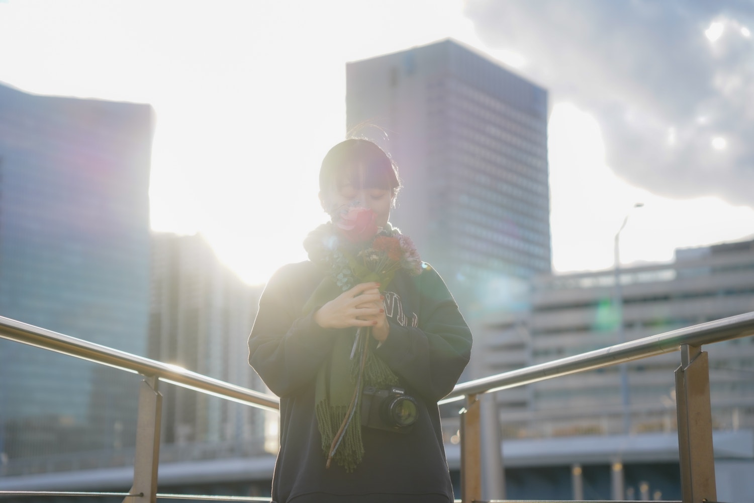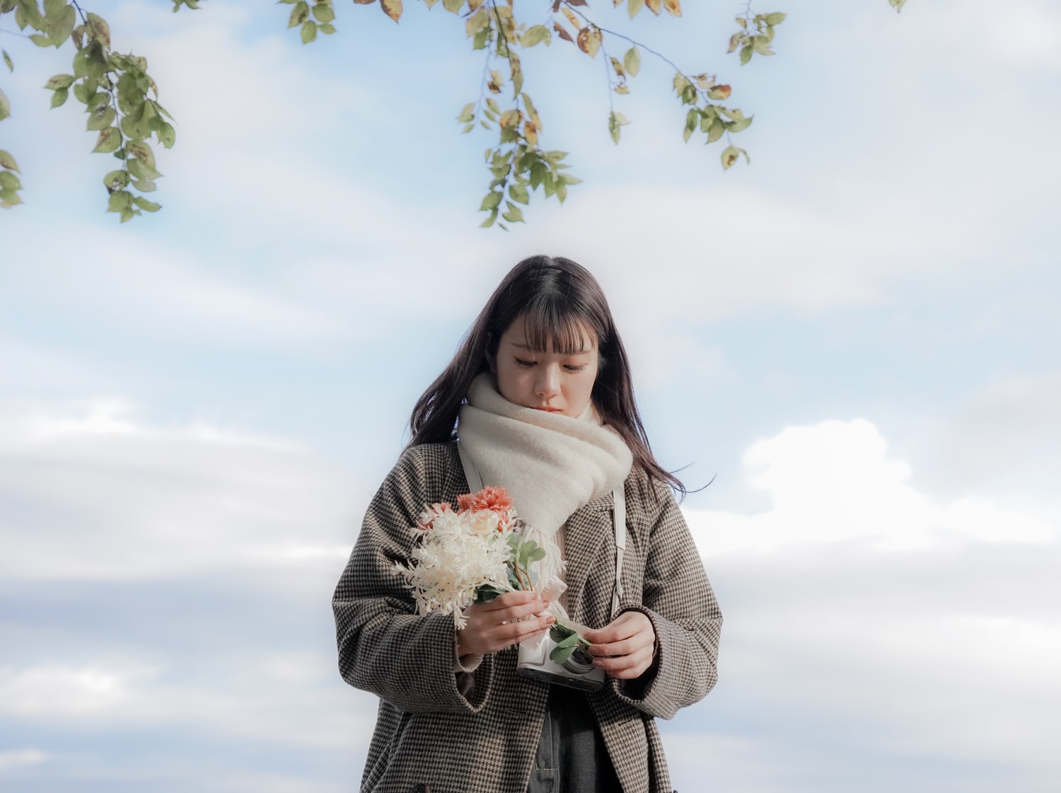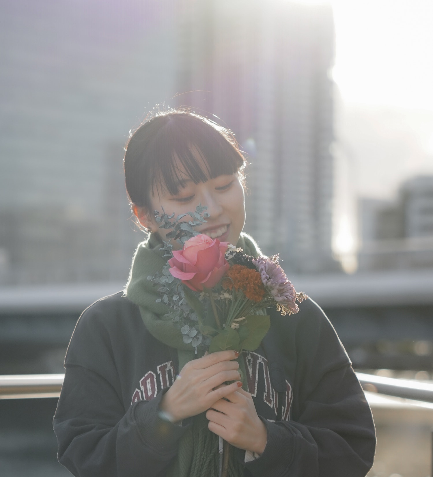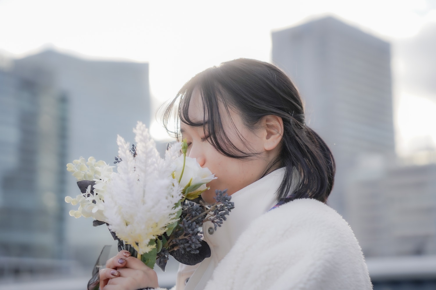 皆がブーケ作り終わって撮り終わったらそれぞれのブーケとポートレートタイム。皆さんのお洋服とお花のマッチ具合を見ていただきたい。笑