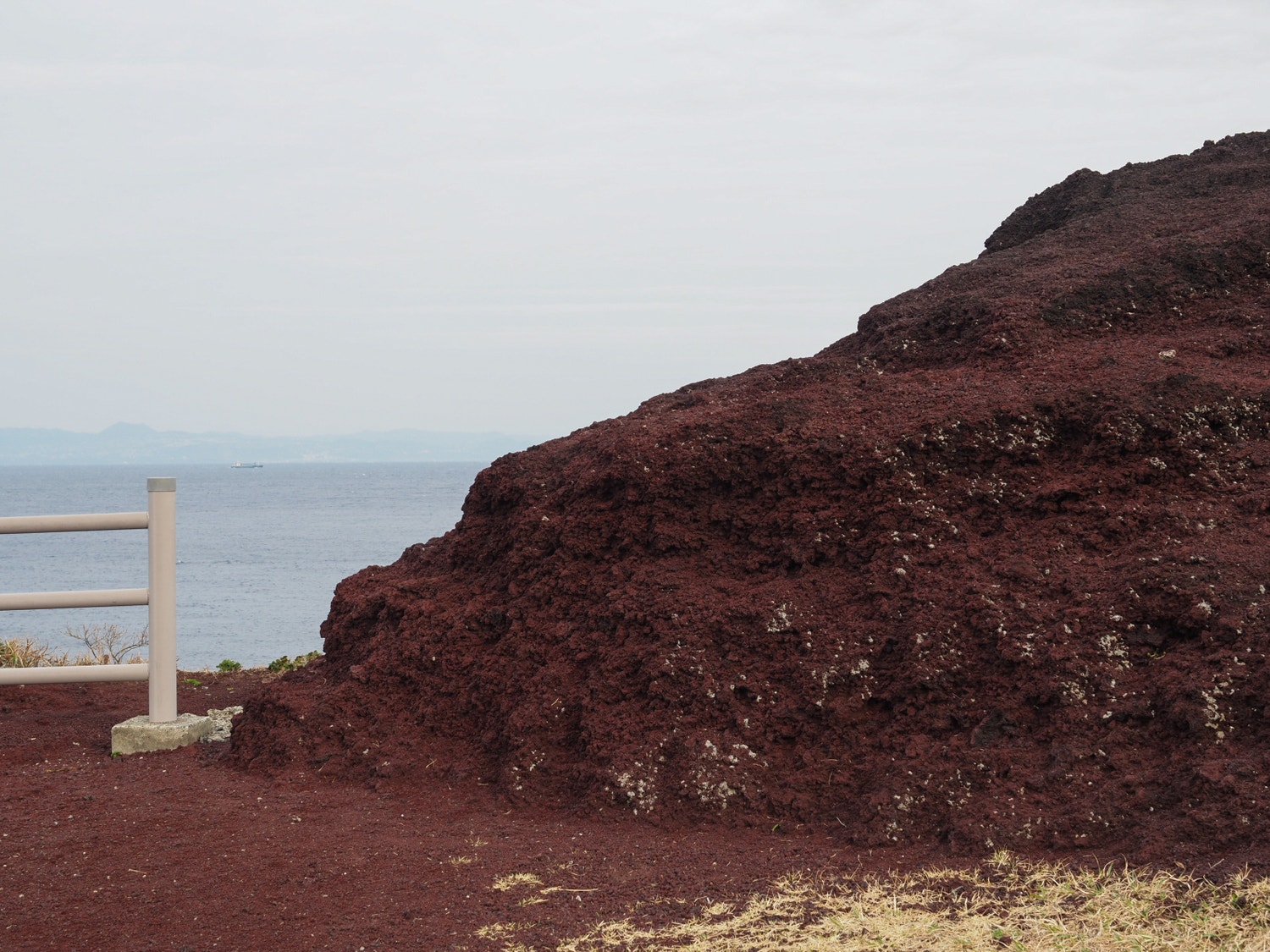 道中には赤禿(あかっぱげ)という、スコリア(火山の噴出物)が酸化して赤くなった岩もあります。
