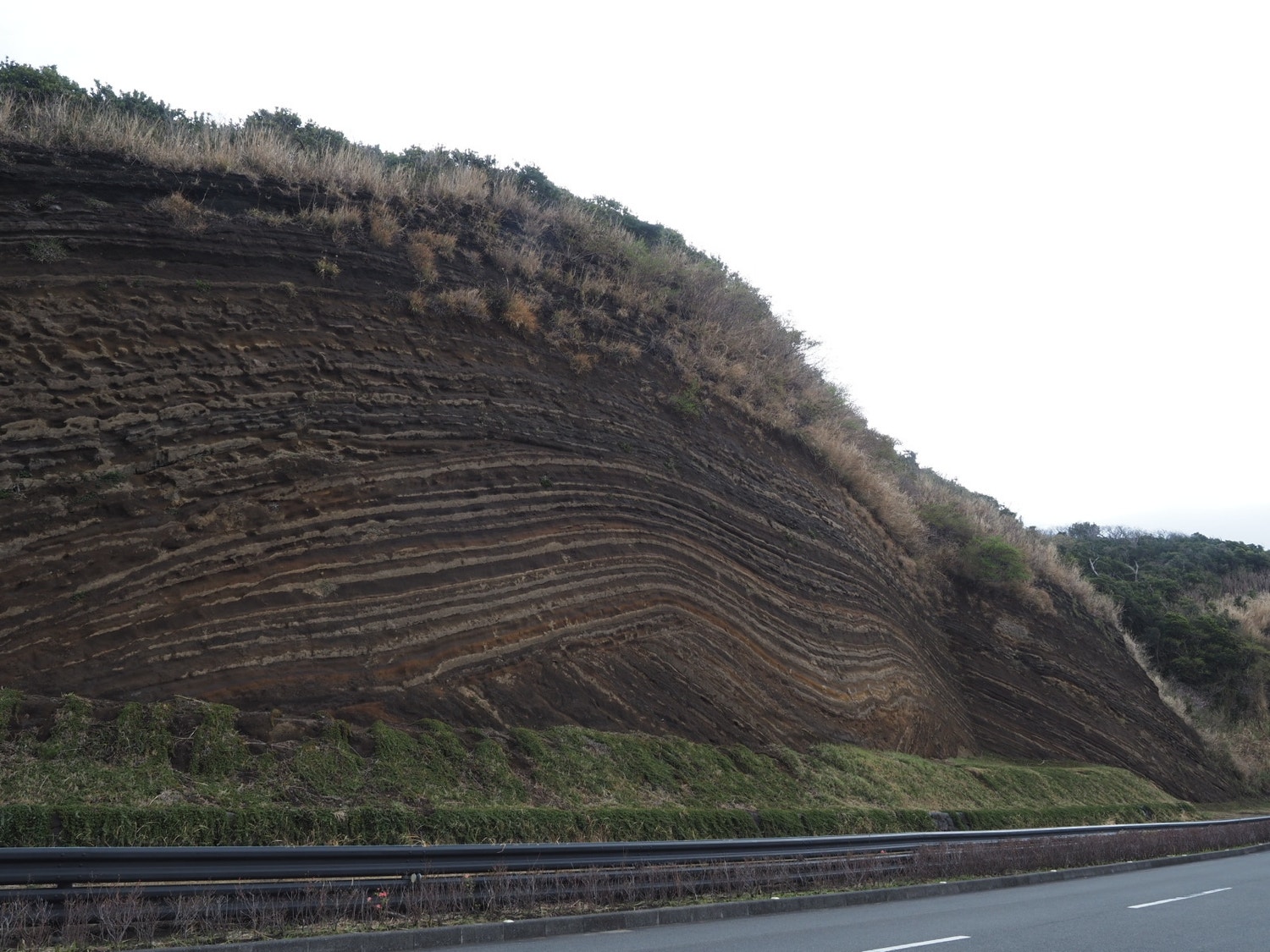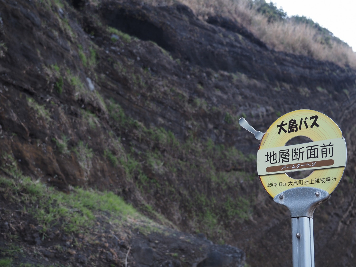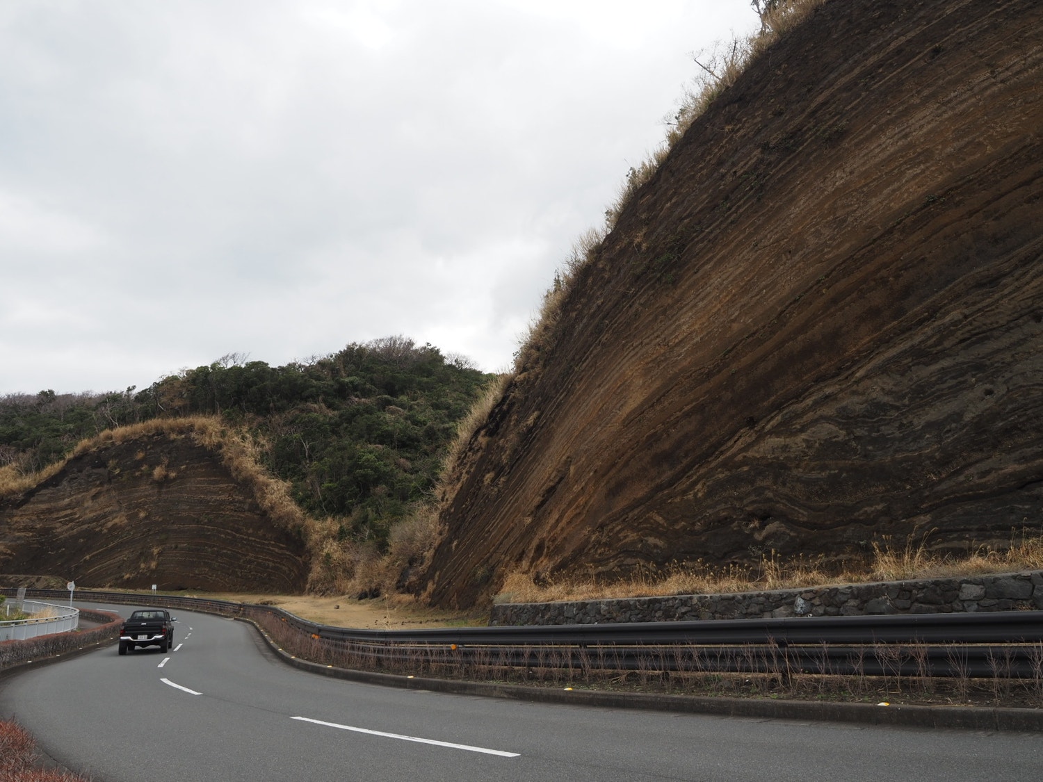 アップダウンを繰り返して、大島の見どころのひとつ地層大切断面にたどり着きました。