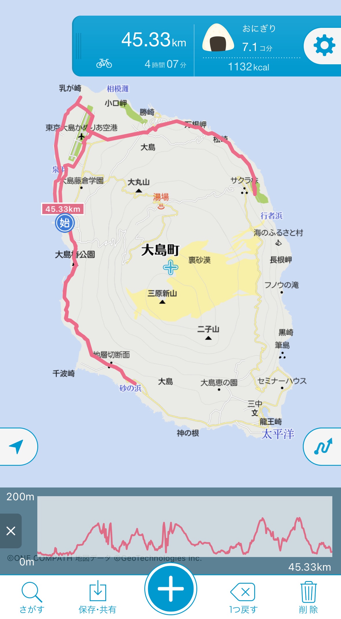 大島一周が52km(一周道路だと46km)なので、結局ほぼ1周分走ったみたいです。電動自転車とはいえ、我ながらやりすぎた。笑