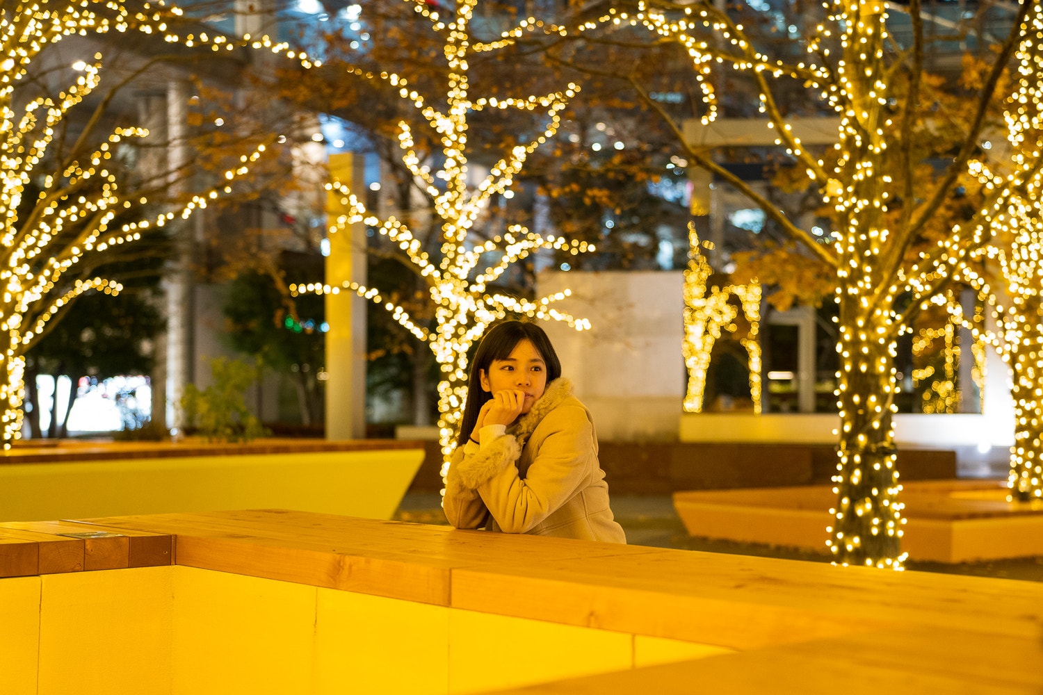仕事帰りの家路を急ぐ人が通ったり、イルミネーションに引かれたカップルや親子連れが時々来るぐらい。都会の真ん中とは思えない穴場スポットでした。