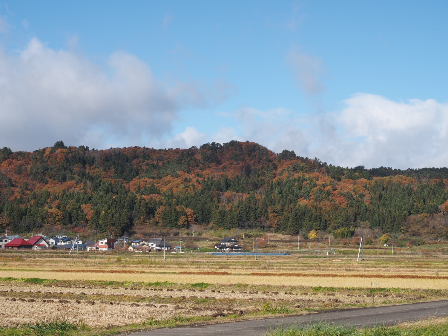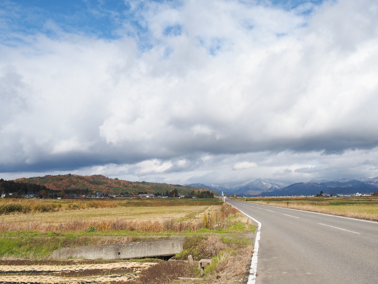 行きはひたすら色づいた山を眺めて走っていたのですが、帰りは右手に雪をうっすら被った山たちが。