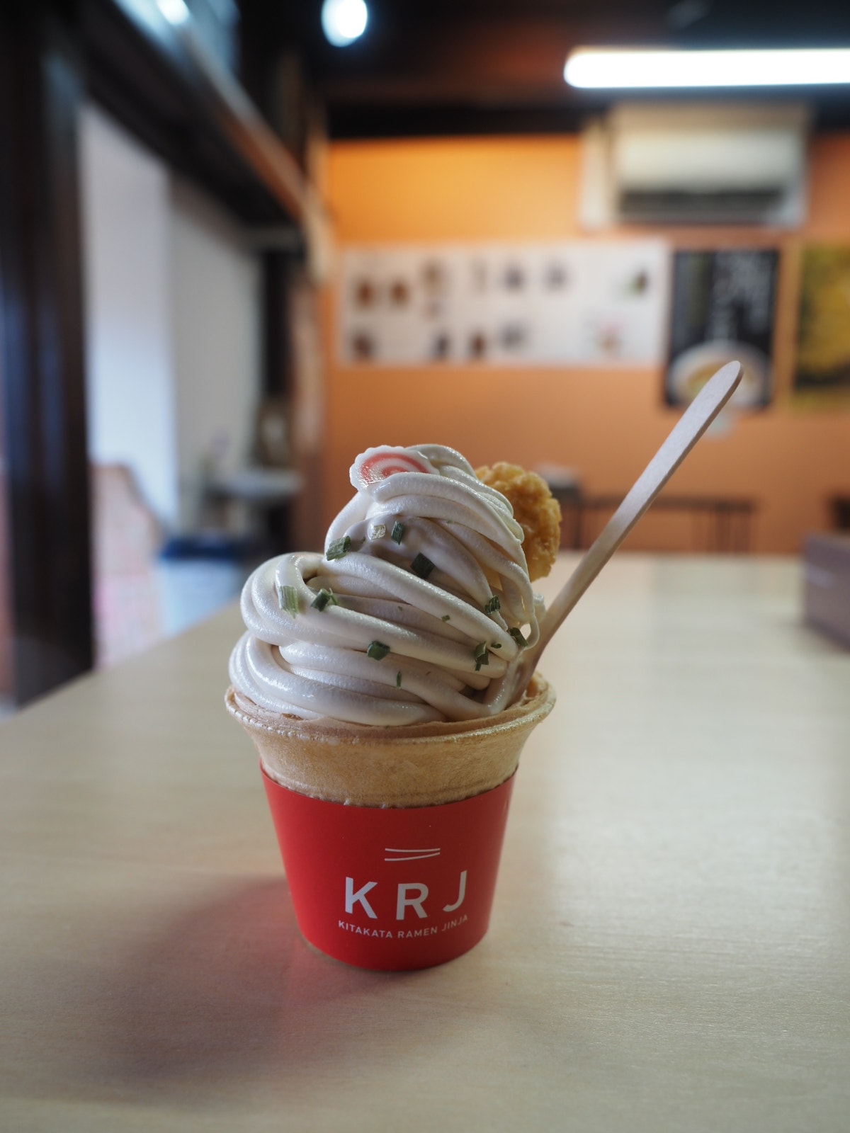 変わり種ソフトなので味を心配していましたが、醤油がほんのり効いているぐらいでおいしかったのです。