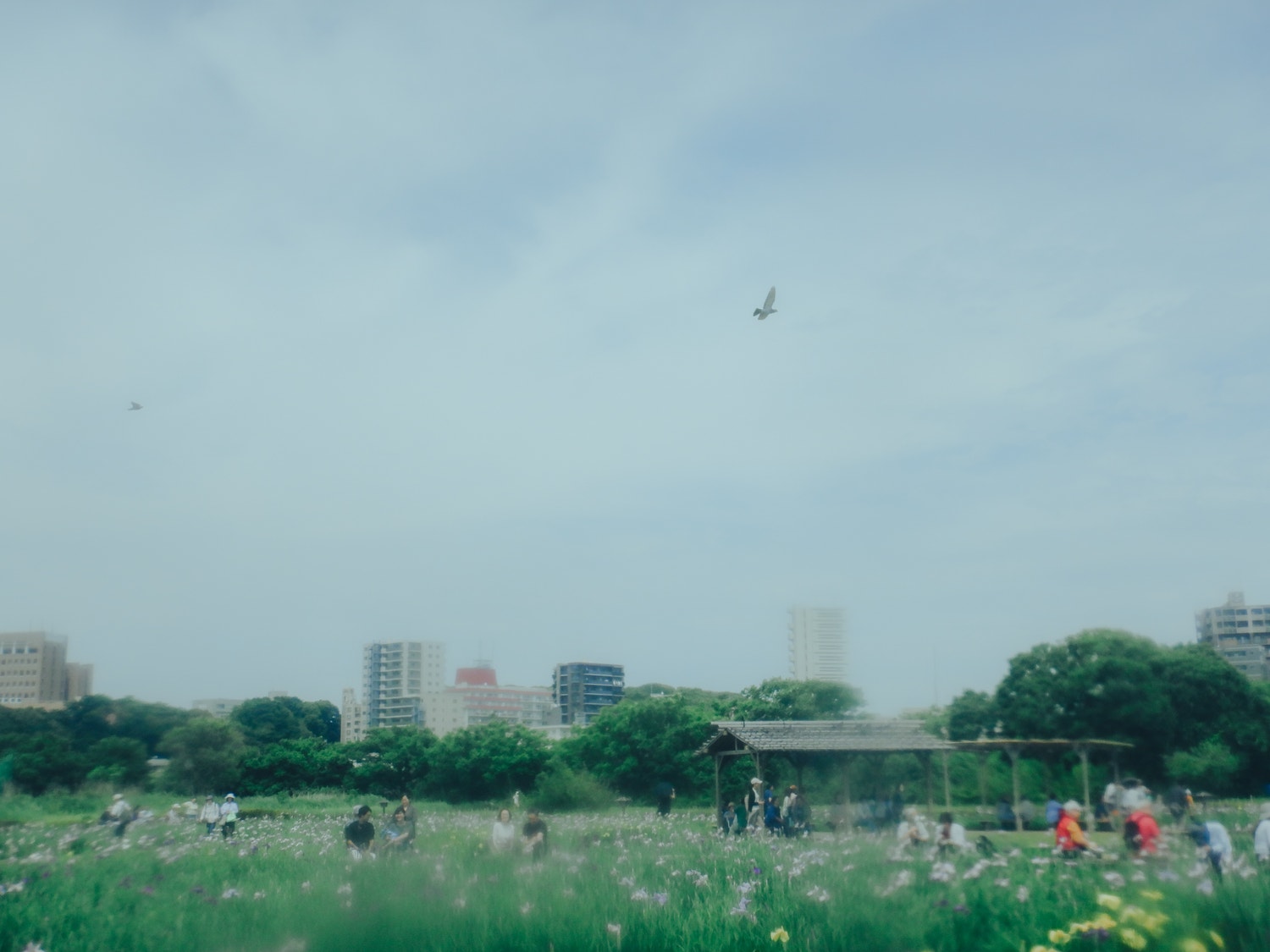 鳩が歩いていたり、子どもたちが虫を捕まえていたり、写真を撮っている人がいたり。なんとも朗らかでやさしい空気が流れていて、「みんながそれぞれの時間を過ごしている場所」という印象でした。