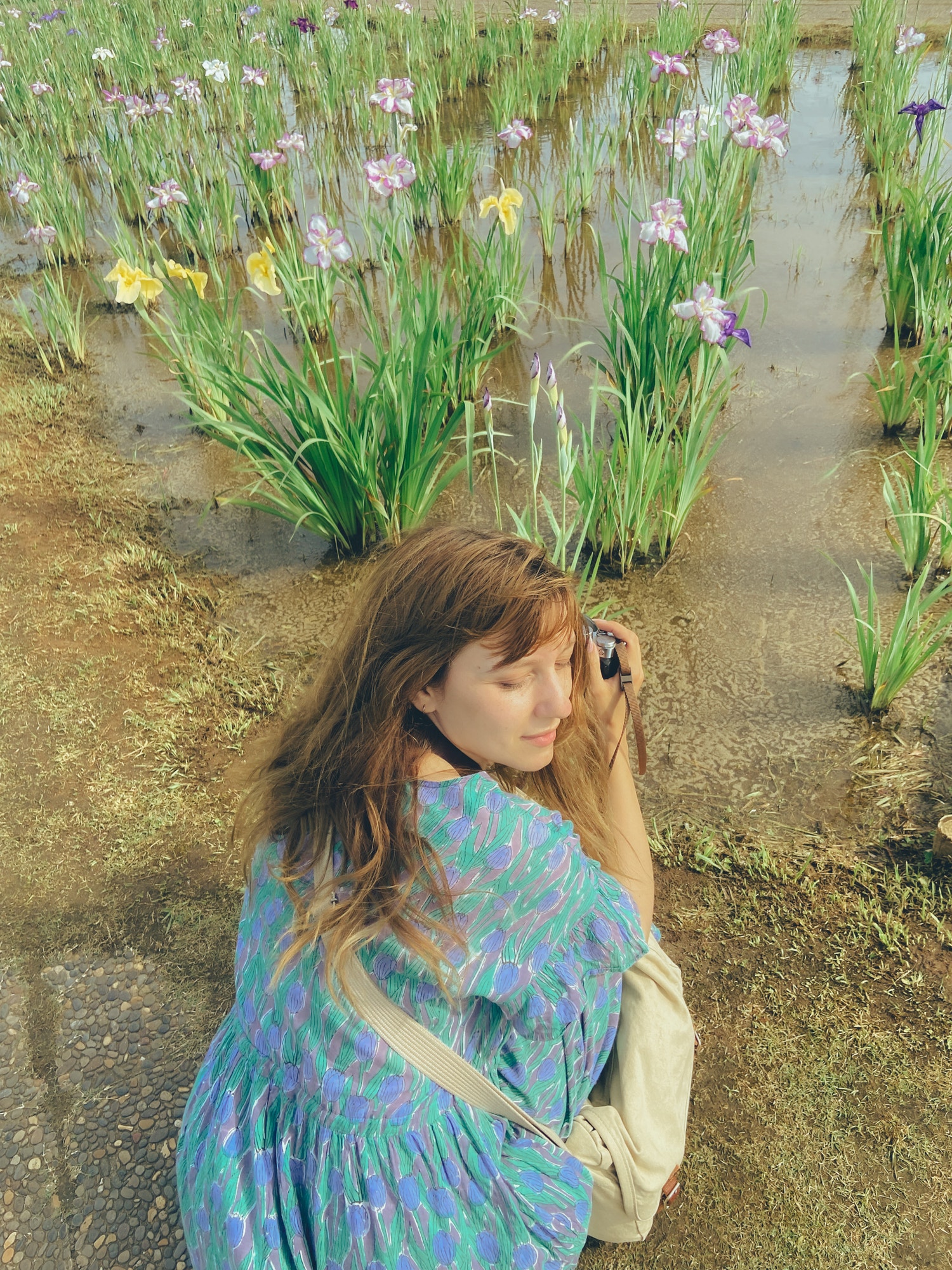 園内には、紫や白、黄色など、さまざまな種類の花菖蒲がずらり。風でふわりと揺れる花びらが可憐でした。