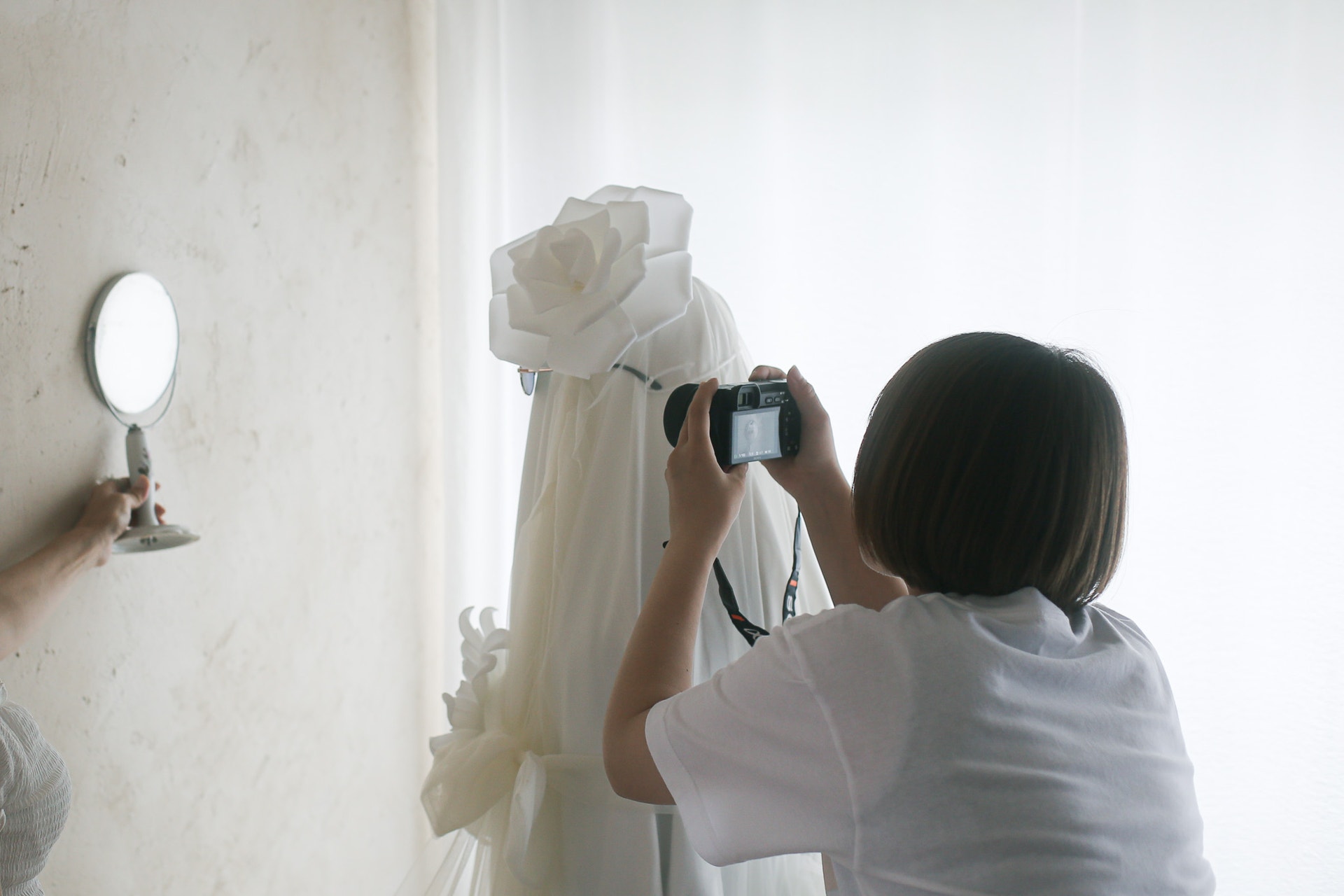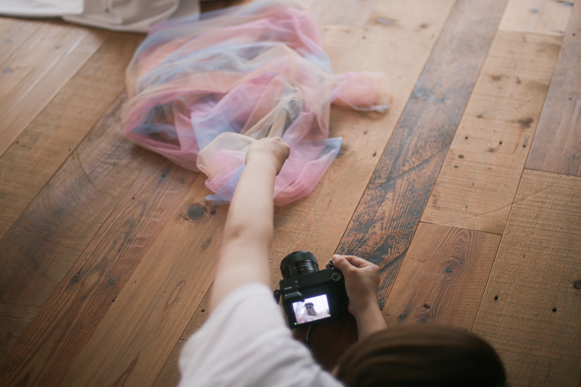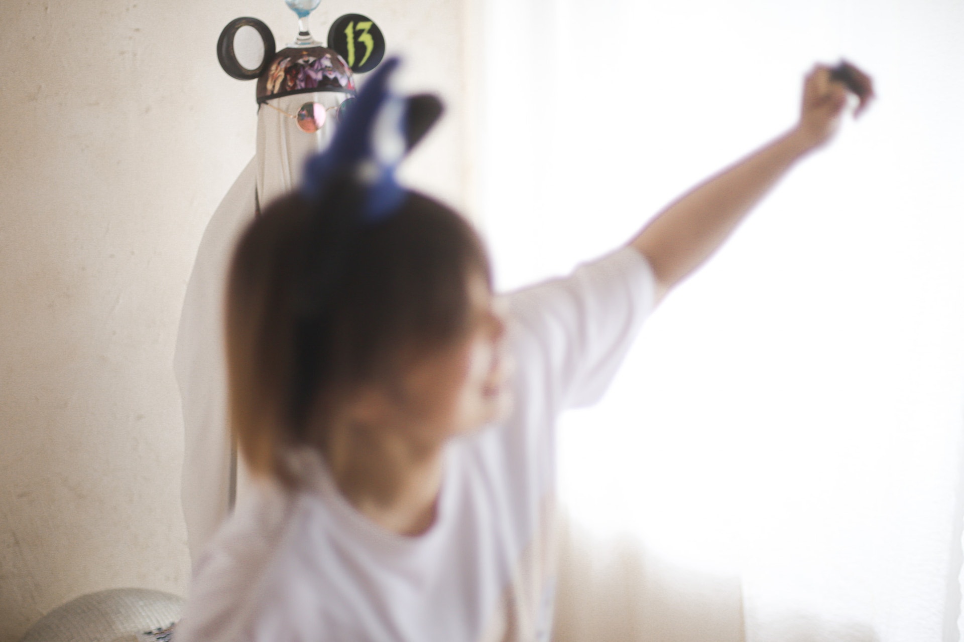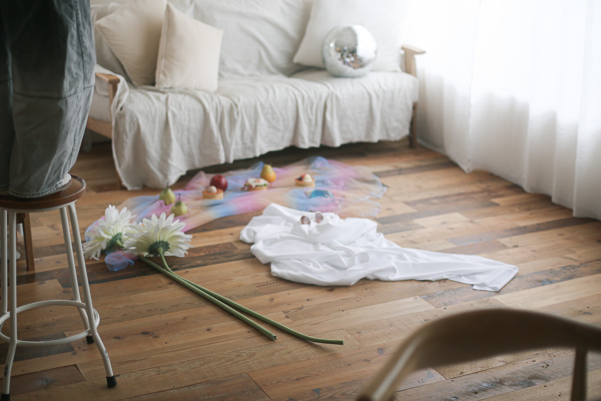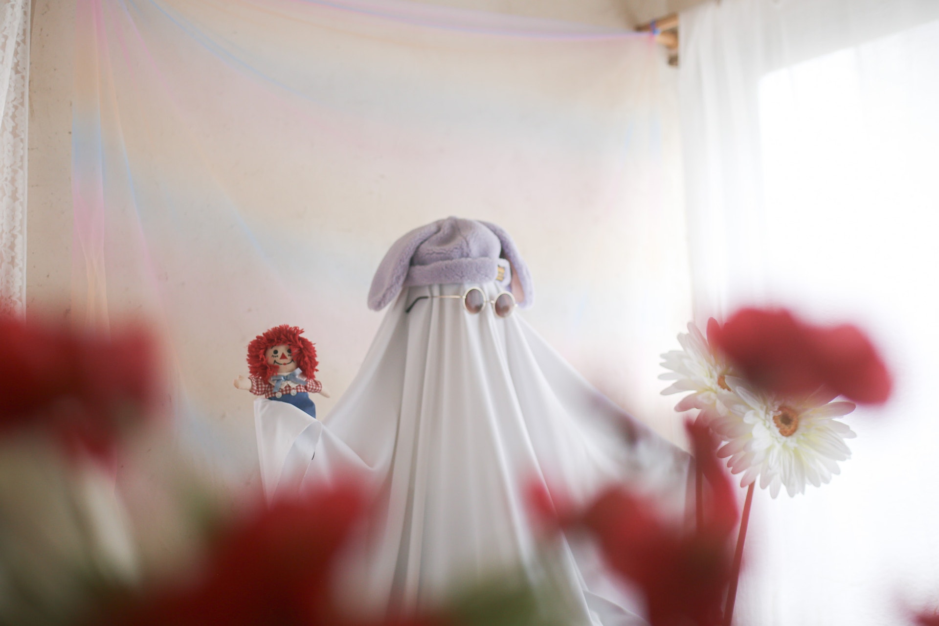「場所変えて撮る?」って話しながらも、リビングのこのエリアを色んなフォトブースに作り替えていたら、結構楽しめていてずっとここで撮っていました👻