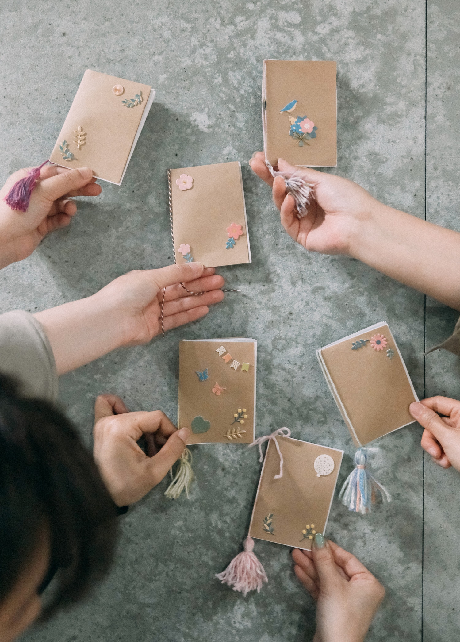 写真を活用したオリジナルグッズを制作するワークショップ。4月5日には「ブックマーク作り」、4月12日には「豆本作り」が行われ、ご自身の写真を使ってオリジナルアイテムを制作していただきました。