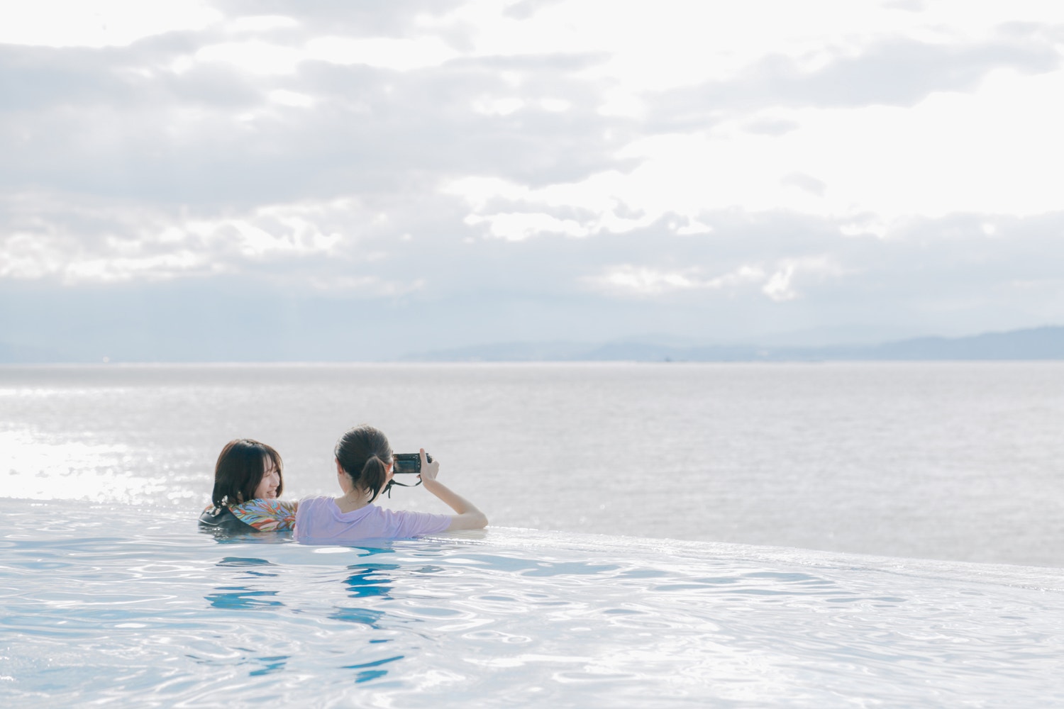 イベントの目玉でもあった、えのすぱの様子からレポート。湘南の海を望むインフィニティプール、光と影が美しい洞窟プール、サウナなどそれぞれのスポットで癒しの時間を楽しみました✨まさに“リトリート”の名にふさわしいひととき。暗い空間から海が広がる風景も楽しめる洞窟エリアは、ワクワクする空間で幻想的な写真も撮れるからおすすめという声も!メンバーのみんなが撮影した写真も、本当にとっても素敵でした❣️