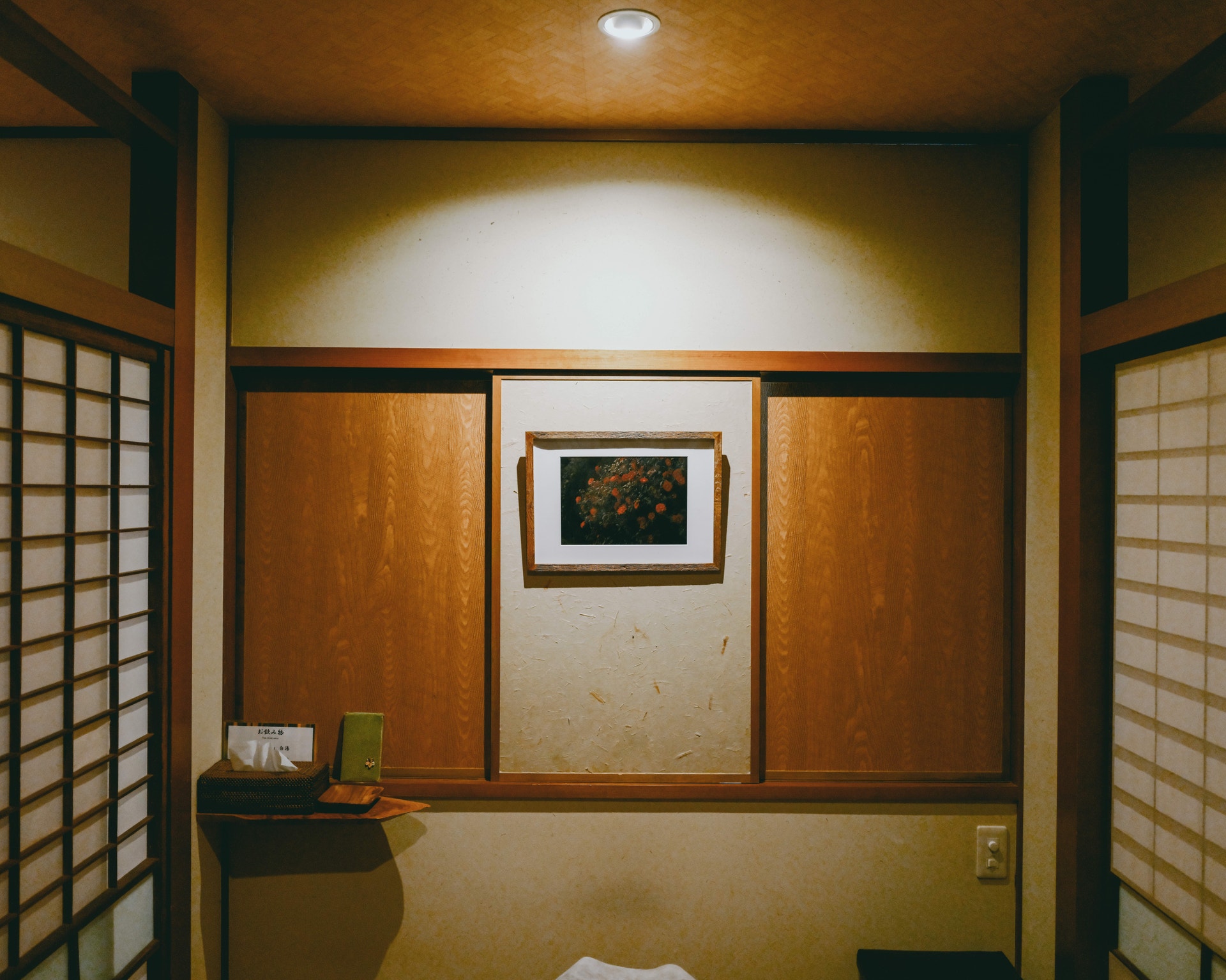 メインの施術室には、お送りいただいた写真の中でも、美しい椿のお花をチョイス。落ち着きある雰囲気がお部屋の雰囲気とマッチしていました!