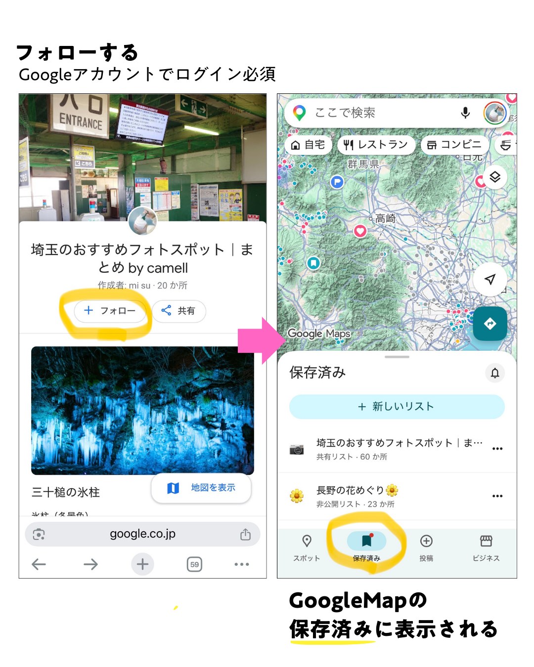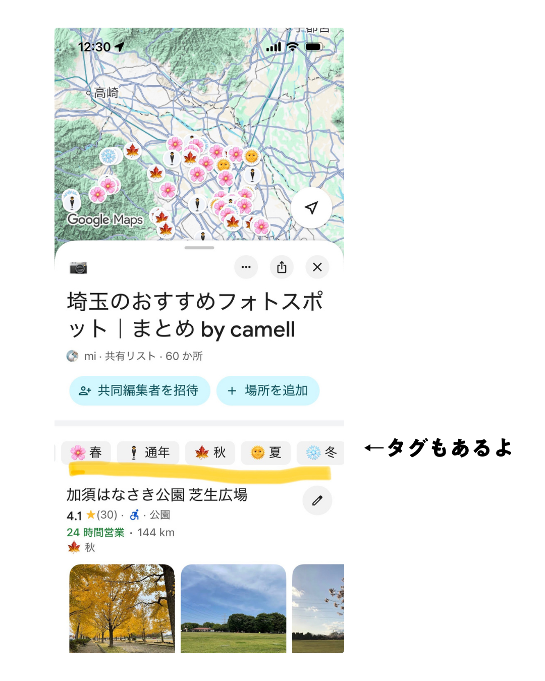 お試しくらげそんちょꕀ2026/03/12 12:37🌏エリアニュース埼玉のおすすめフォトスポット|まとめ「やりたいことあります部屋」をきっかけに、埼玉のおすすめフォトスポット情報が纏まりました!(たくさん出してくれた @うらら さんはじめメンバーの皆さんに感謝 )町役場でできることないかなあ?と考えまして、今回はためしに『GoogleMapの保存リスト』を作成してみました!\保存リストの使い方/ 段落テキスト.png 1.43 MB タグ別に見ることもできるよ段落テキスト (1).png ... 続きを見るにはメンバー登録が必要です。登録すると限定記事の閲覧やメンバー同士の交流、限定イベントへの参加などができます。今すぐ参加するメンバーの方はこちらからログインShare1月〜2月開催 /つぶやきで参加!アートフォトコン 受賞作品発表