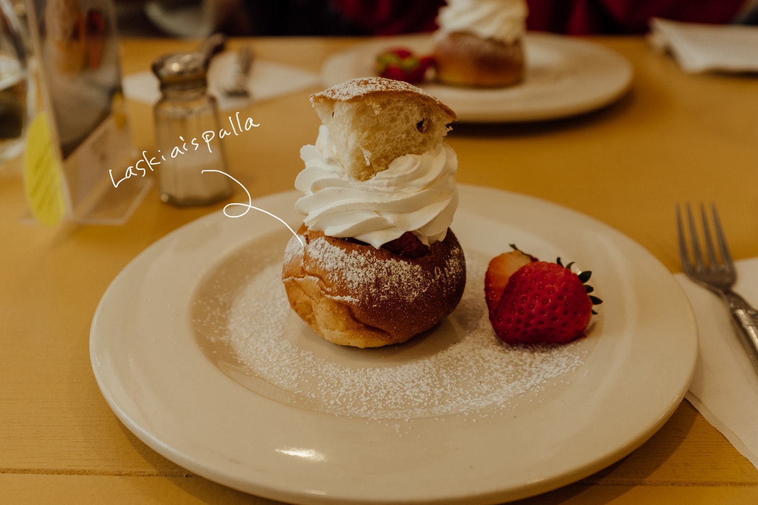 まだお腹に余裕がありそうだったけど「木曜日のスープ」はさすがに無理そうだったので、季節的に向こうでは食べたことがないラスキアイスプッラを追加で頼みました。