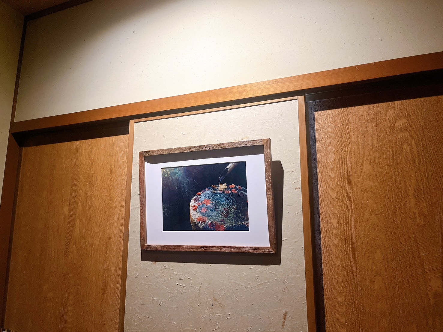 施術室には大きなロビーや玄関には、A5・2Lサイズの小さな写真たちも展示。