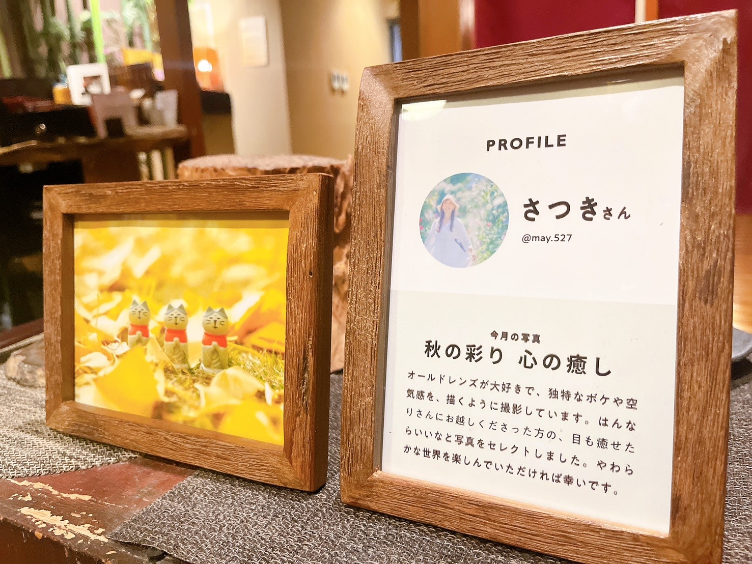 今月エントリーしてくれたメンバーは、 @さつきさん。店内を訪れた方が、写真でさらに癒されてもらえたら…という素敵な願いを込めて、秋冬らしいカラフルな自然の写真をご提供いただきました。