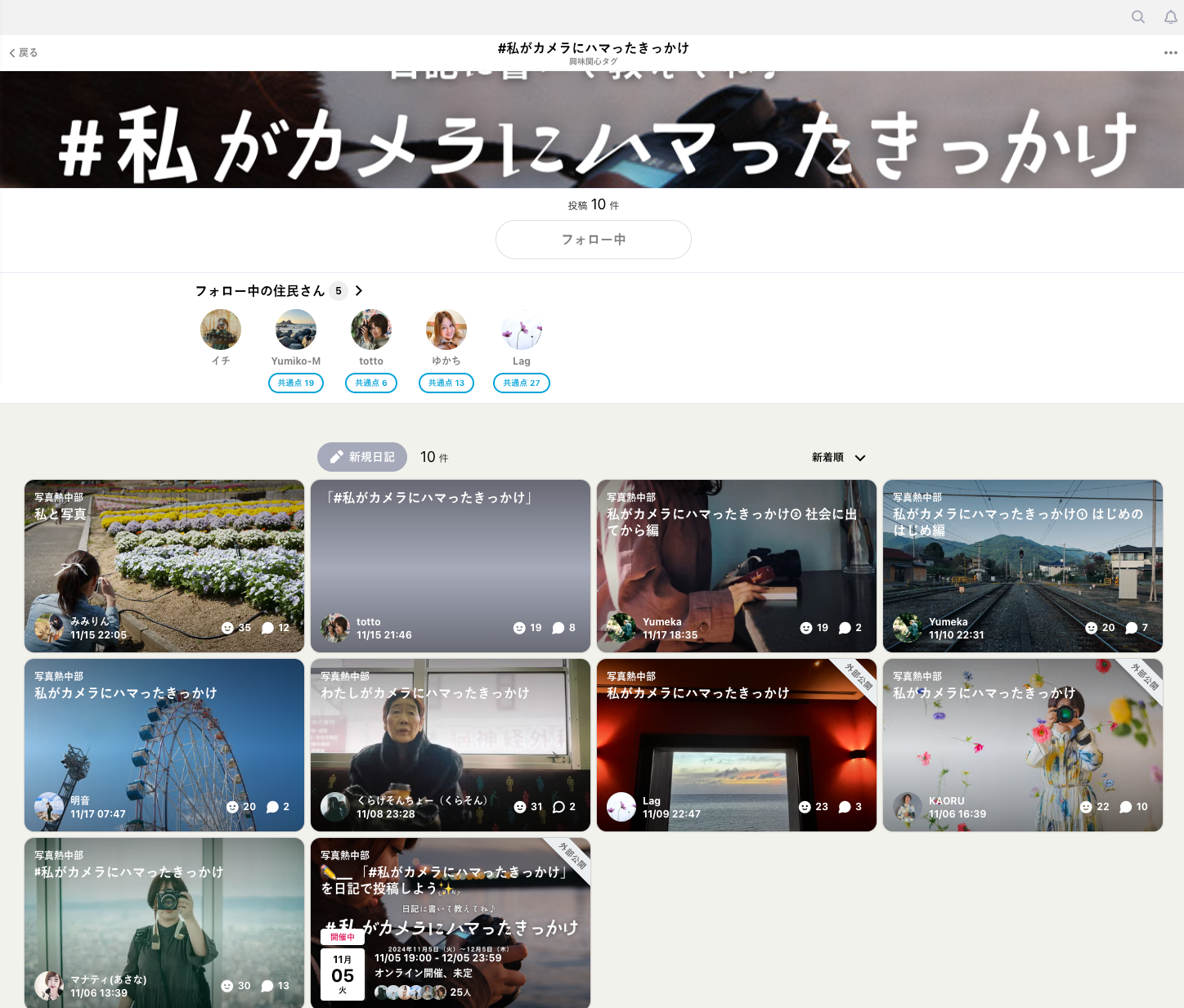① それぞれ日記の下にある「ハッシュタグ」スクリーンショット 2024-11-18 13.56.15.png 7.48 KB ② もしくは「興味関心タグ」から検索してクリックするスクリーンショット 2024-11-18 14.04.45.png 323.44 KB