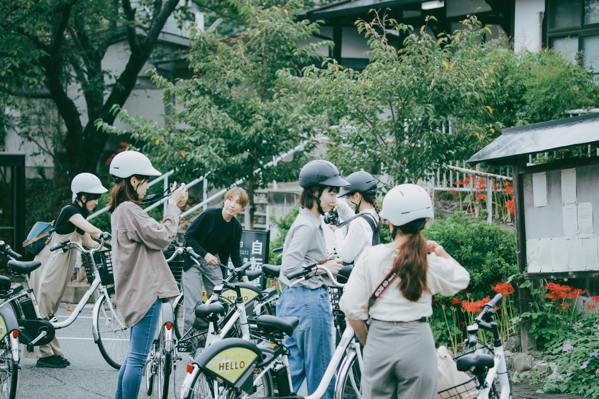 吉野神宮駅にシェアサイクルステーションがあって、ここで自転車を借りるところからスタート。今回利用した「HELLO CYCLING」は、電動アシスト自転車のシェアサイクル。事前にスマホでアプリログイン・設定をしたら、現地でQRを読み込むだけで「貸出・返却」ができるんです。