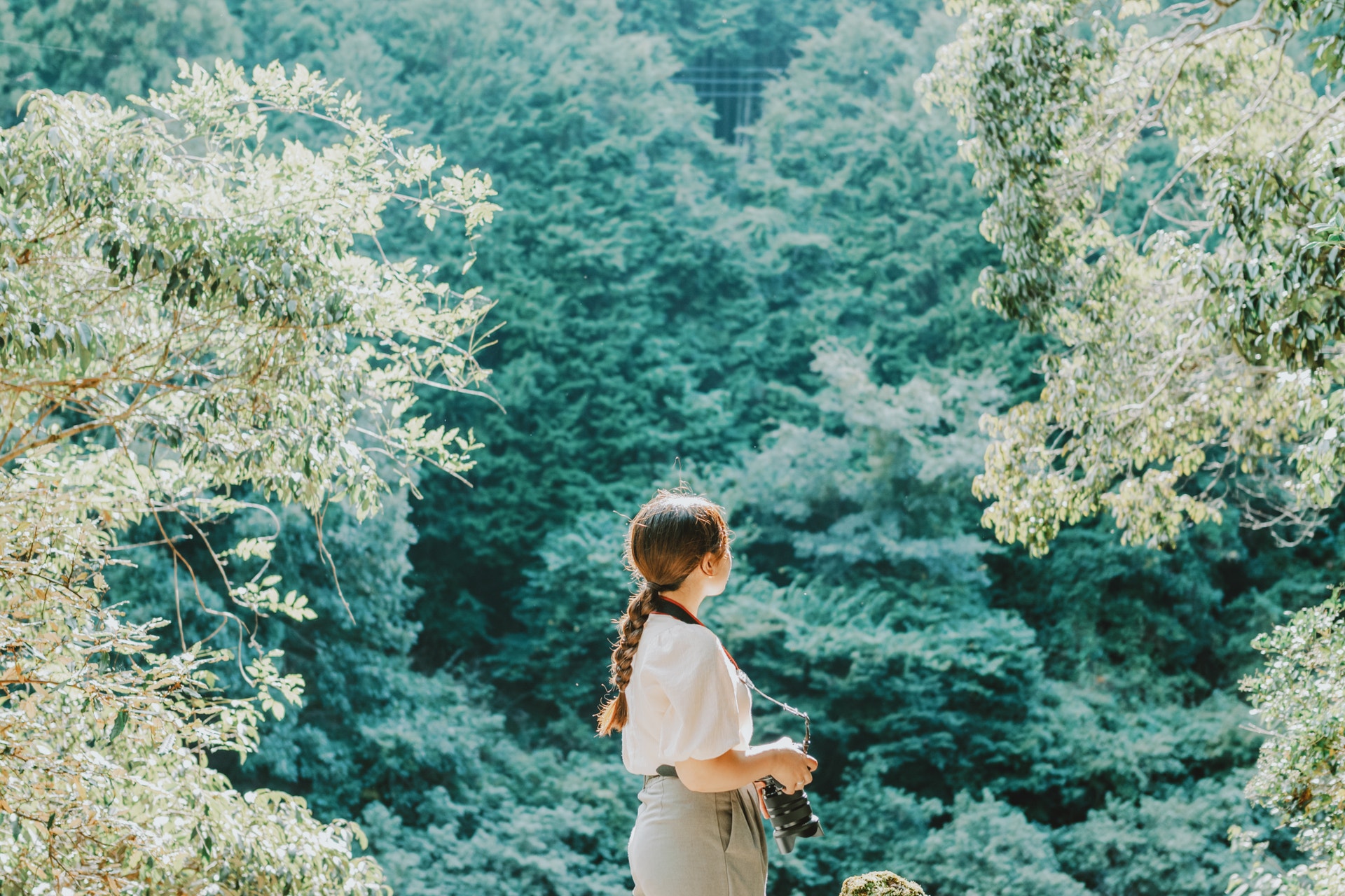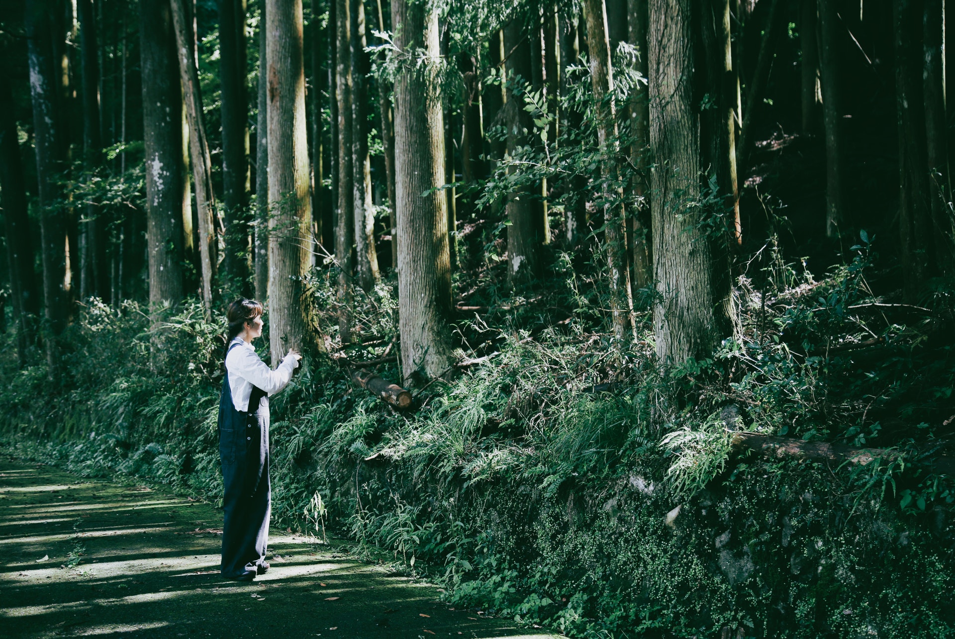 まさに"よりみち"だった場所が、木漏れ日が綺麗だった山道。交通量はなかったのですが、普通の道なので車には気をつけて、光が差し込むのを待っていました。