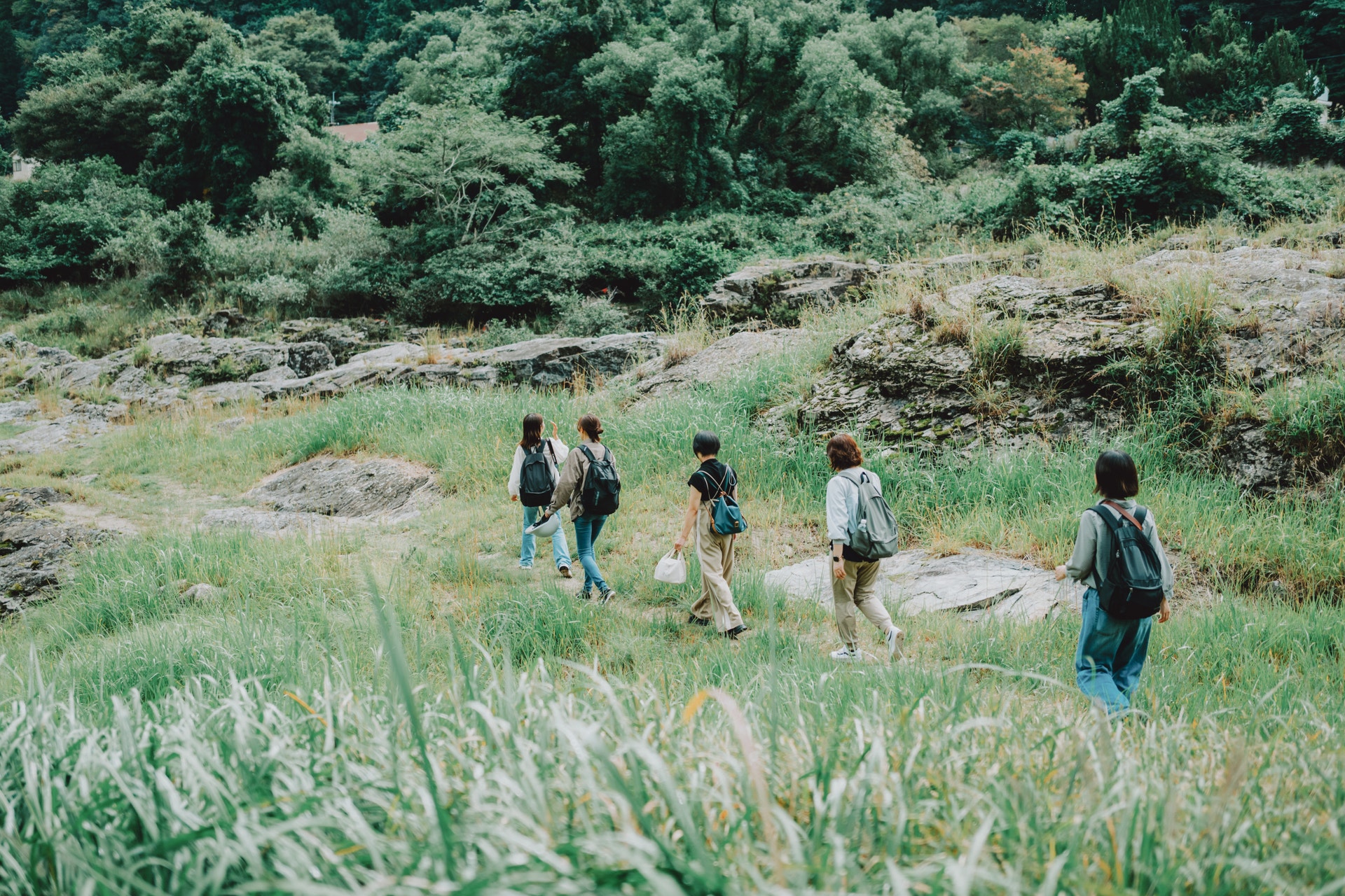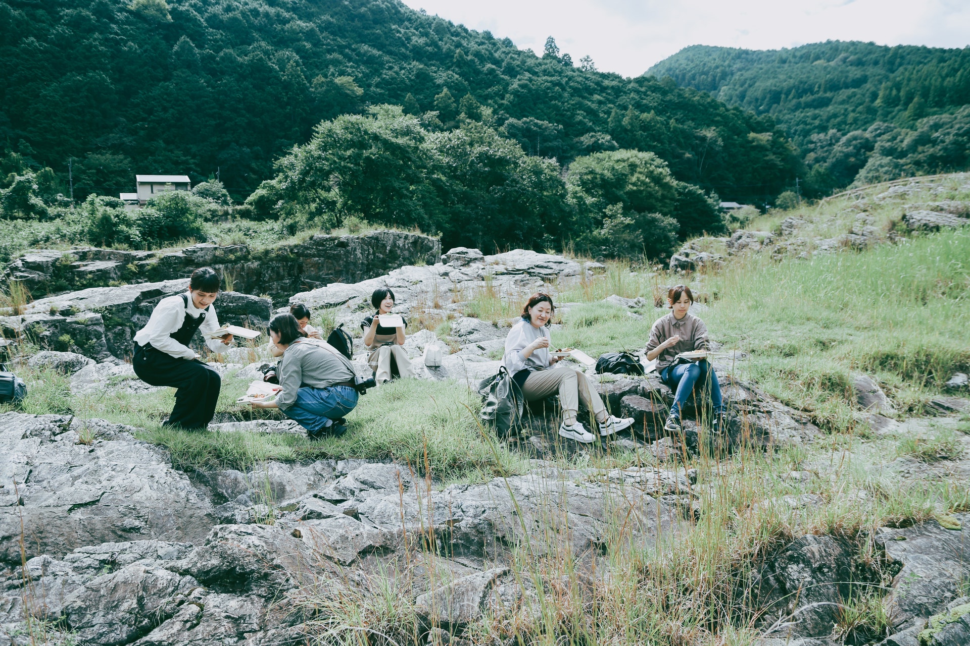 この場所から見下ろして見つけた岩場でピクニックもいいねなんて話していたのですが、下に降りてみると道がない場所だったので笑。歩いて行けそうな草原を抜け、さらにゴツゴツした岩場で大自然に囲まれたピクニックランチ!