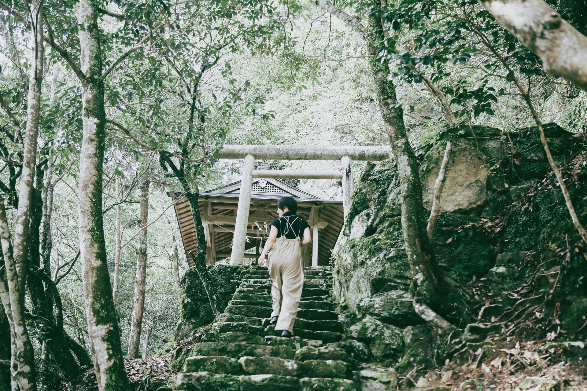 生い茂る苔が美しい神社でした。鳥居が見えればもうすぐそこで、美しい天皇淵を見下ろしていたり、みずみずしい苔に近づいて撮っていたり。木々や緑がキラキラしていたのは、朝の雨のおかげかもしれません。(ここはも朝は雨降っていたのかな)